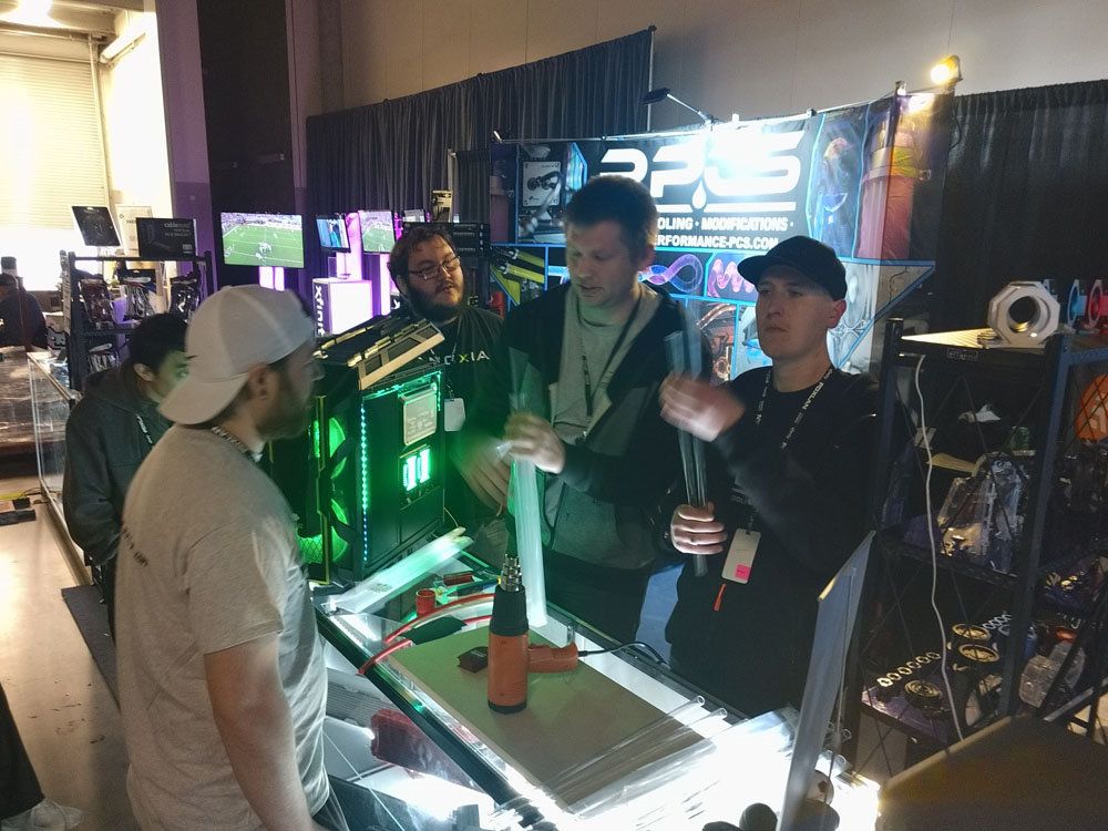 With Set up complete we headed out with Calen to eat and prepared for the next day. Being the day of the event and with time to kill until 6pm (which is when PDXLAN officially started) we headed out to Portland. We were able to see some of their iconic spots such as Powell's bookstore and the Original Voodoo doughnuts. With 6pm drawing close we headed to the event to prepare for the night, as the doors officially opened and attendees setting up their rigs we decided to walk around and check them out. We were rather impressed with the amount of Custom loops and Watercooled PCs that were at the event. We stayed for a few hours talking about watercooling and selling some Ethernet cords to people who forgot them (as this is a common thing we hear), as the night started to die down we decided to head back to the hotel and rest for the next day. We hit the following days even harder than the previous. Together with the PPCs team and Calen from Envious Mods, we were able to talk to 100’s of attendees and even hold a rigid tube bending demonstration. During the demo Calen gave tips and tricks on how to bend both PETG and acrylic tubing. After his demo we let attendees come up and try their own hand at bending the tubing. It was amazing to see the enjoyment everyone got out of this simple demonstration.