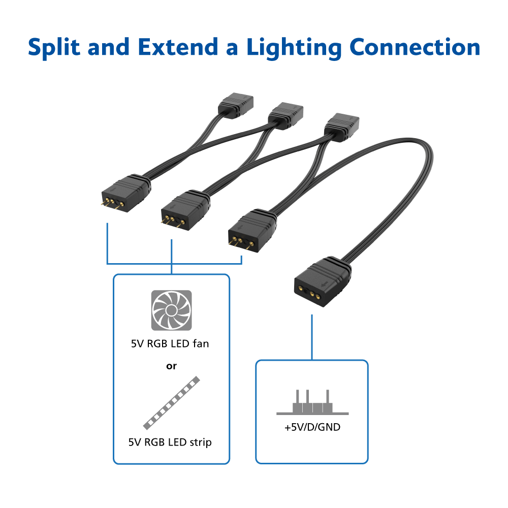 Compatible with ASRock, ASUS and MSI addressable RGB motherboards.