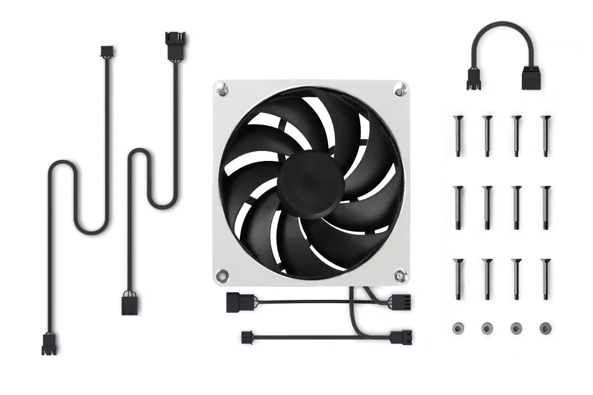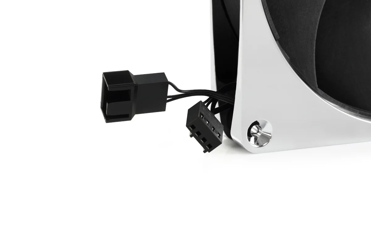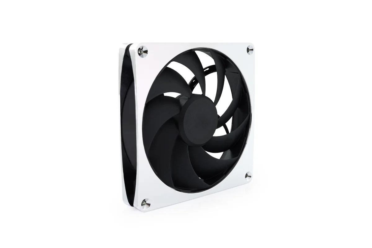 The Alphacool Apex Stealth combines technical innovation with a timeless design. Featuring a solid die-cast zinc frame in a sophisticated chrome finish and globally unique decoupling technology, this fan delivers outstanding cooling performance with extremely quiet operation.