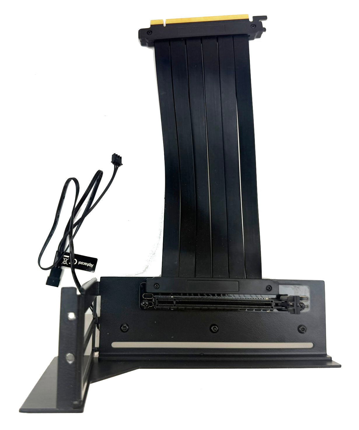 This is a modfiied version of the Alphacool Aurora Vertical GPU mount where PPCS has cut off the mounting bracket and created a bottom mounting plate to where you can mount this in any location in your case that has the room to accommodate it. After our modifications we have professionally re-powdercoated the parts so it looks factory. This is a great mod which gives you immense opportunities to put your VGA in the exact spot you prefer, granted you will need to get riser extensions to use with this mount since it will be located further from the PCIe connector. So please make note of this when you order that you need to measure the distance your mount is from the VGA PCIe slot so you can order the correct length VGA riser extension.