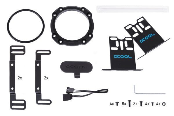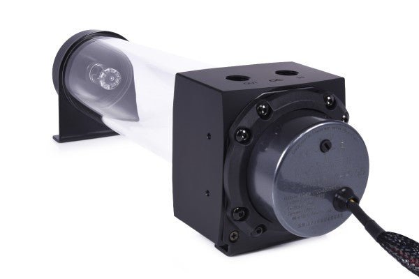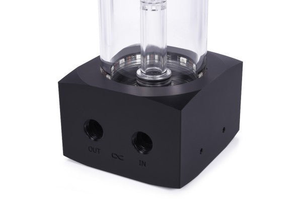 The Alphacool Core expansion tank has an integrated pump top and is compatible with all original D5 pumps as well as all Alphacool VPP pumps. The pump retaining ring, a pump O-ring and all screws are included in the scope of delivery.