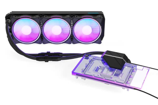 The combination of all of the components results in a solution that is as simple as an AIO solution to install, but with the performance of a pre-assembled and prefilled custom loop.