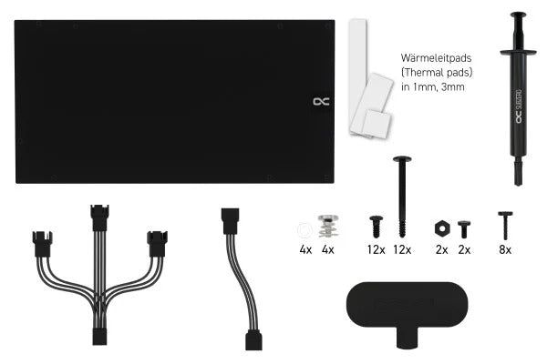 The Eiswolf 2 graphics card AIO water block not only cools the GPU with liquid but also all relevant components that require active cooling. This includes the graphics memory, the VRM and, if necessary, other components that require direct cooling. By using the Eisblock GPX Aurora water cooler, the cooling capacity is identical to that of a DIY graphics card water cooler.