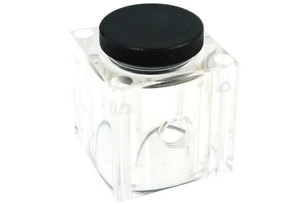 ¼” threads are machined into the side of the reservoir. They can be used as an Inlet or for a lighting module.