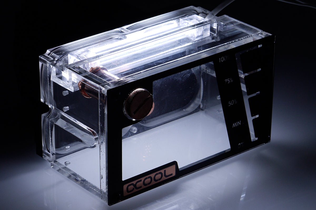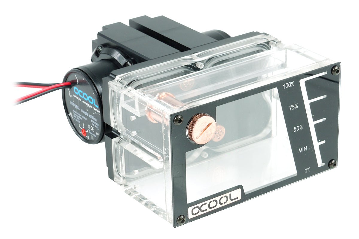 Alphacool?s high-class solution reservoir with preinstalled Alphacool VPP655 high power pump.