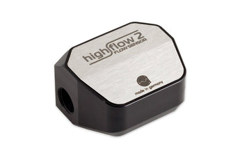 The high flow 2 flow sensor from Aqua Computer can easily be integrated into the cooling circuit and enables continuous flow measurement. This flow sensor is also equipped with a temperature sensor for recording the coolant temperature.