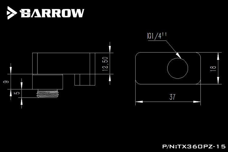 Barrow G1/4" 360° Rotary Offset Adapter 15mm Fitting - Shiny Silver