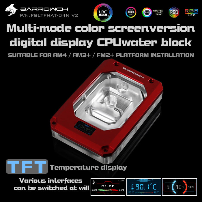 Want a unique CPU waterblock with an integrated OLED temperature readout, but don't want feel like selling a kidney to get one? Well you're in luck because Barrowch has you and your CPU covered with this sleek solution! Designed for AMD consumer and workstation platform this block will work with Ryzen X399 socket CPUs. With 0.4mm micro-fins and copper heat-plate you get thermal dissipation not typically found in this price range. Barrowch could have stopped there, but they insisted on giving you all the modern conveniences of fully customizable RGB that can be synced with your ASUS, MSI, Gigabyte and ASRock motherboards (adapter cables sold separately). The OLED power is provided via a standard 3-pin fan connector and the temperature readout is achieved via a thermal probe built into the block. All mounting hardware is included so you have everything you need to get up and running.