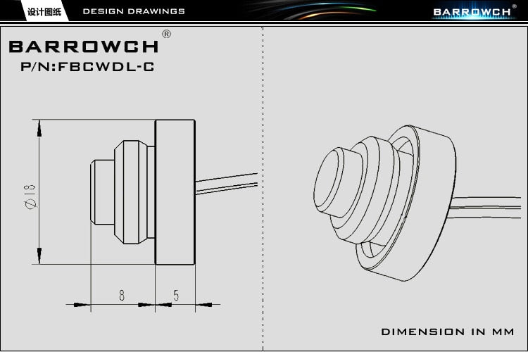 Barrowch G1/4 10K Temperature Sensor Stop Fitting- Black