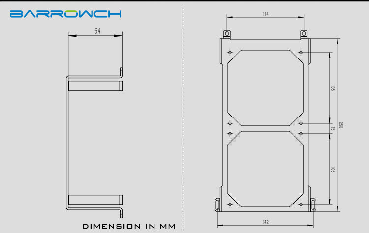 This Radiator Bracket from Barrowch is meant to attach a 240 Radiator to the Barrowch Mobula case.