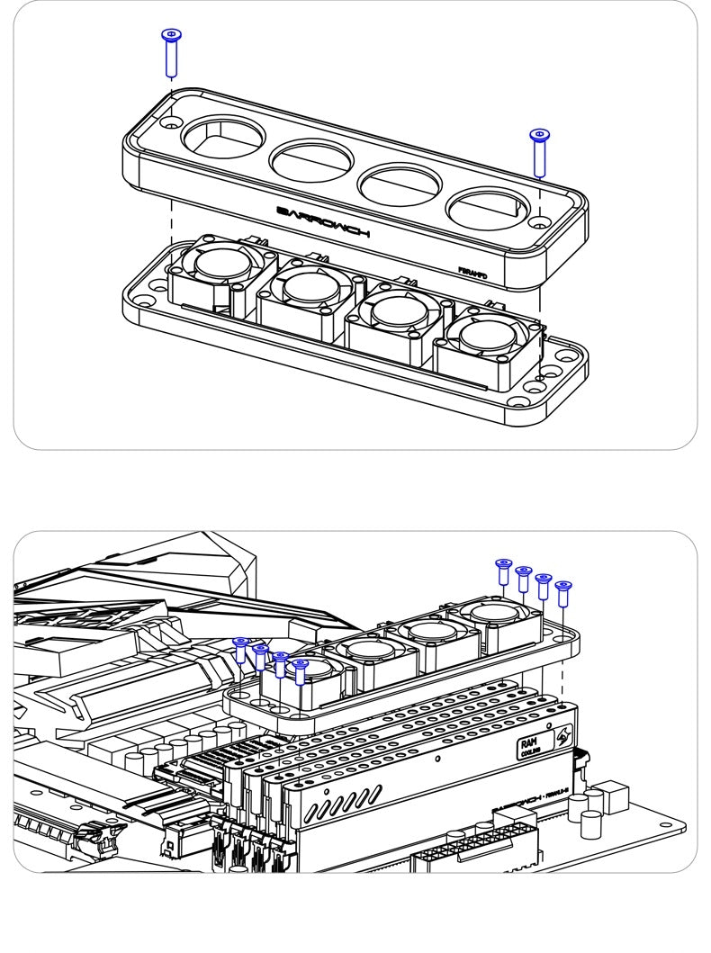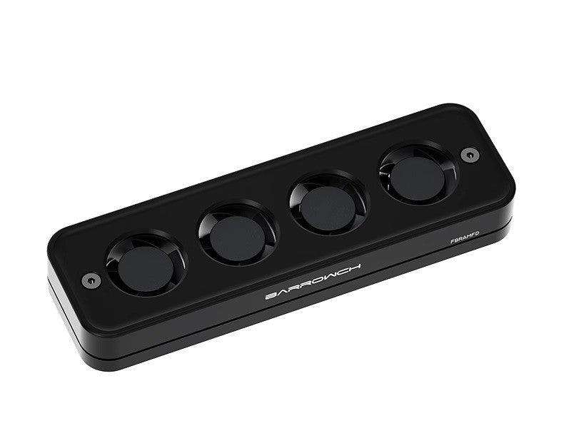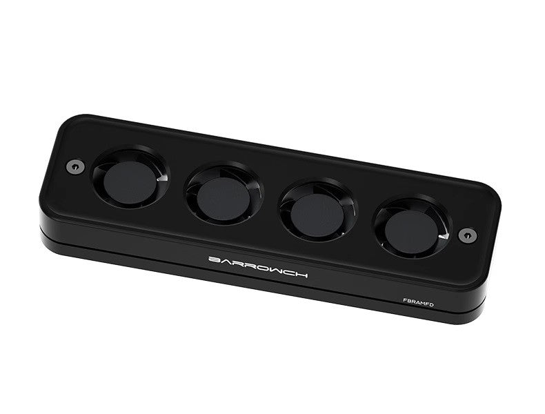Experience optimal cooling for your RAM modules with the Barrowch RAM Active Air Cooler in Black (FBRAMFD), featuring four mini PWM fans spinning at 8000RPM for efficient heat dissipation and enhanced system performance.