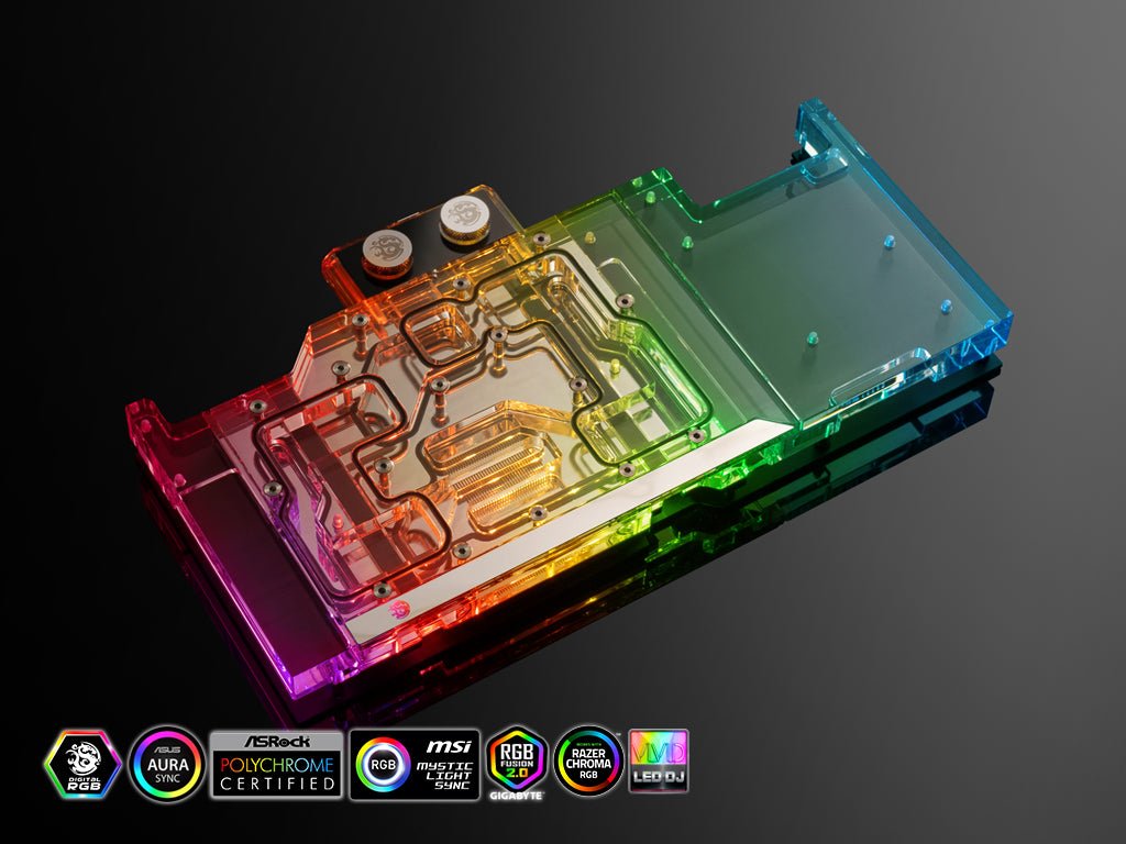 The Bitspower Classic VGA Water Block for EVGA GeForce RTX 3090 FTW3 series is sure to become the center of attention of your case with bright LEDs that are certified by ASUS AURA Sync, GIGABYTE RGB Fusion 2.0, MSI Mystic Light Sync, ASRock Polychrome, BIOSTAR VIVID LED DJ and Razer Chroma.