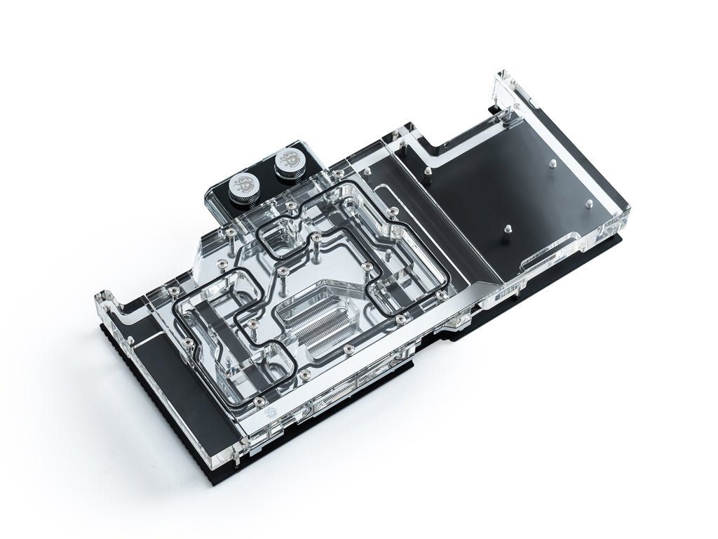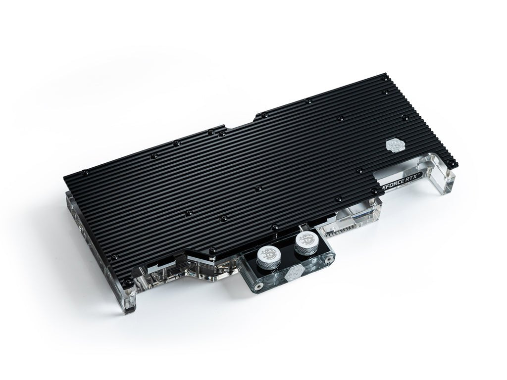 Covering the full length of the card, the water block is layered with a nickel and chromium plated copper base plate that is meticulously carved to allocate the most contact over the GPU and VRM area. Moreover, the water block is covered by an acrylic top layer equipped with a Bitspower Digital RGB LED strip that is sure to make your system look amazing.
