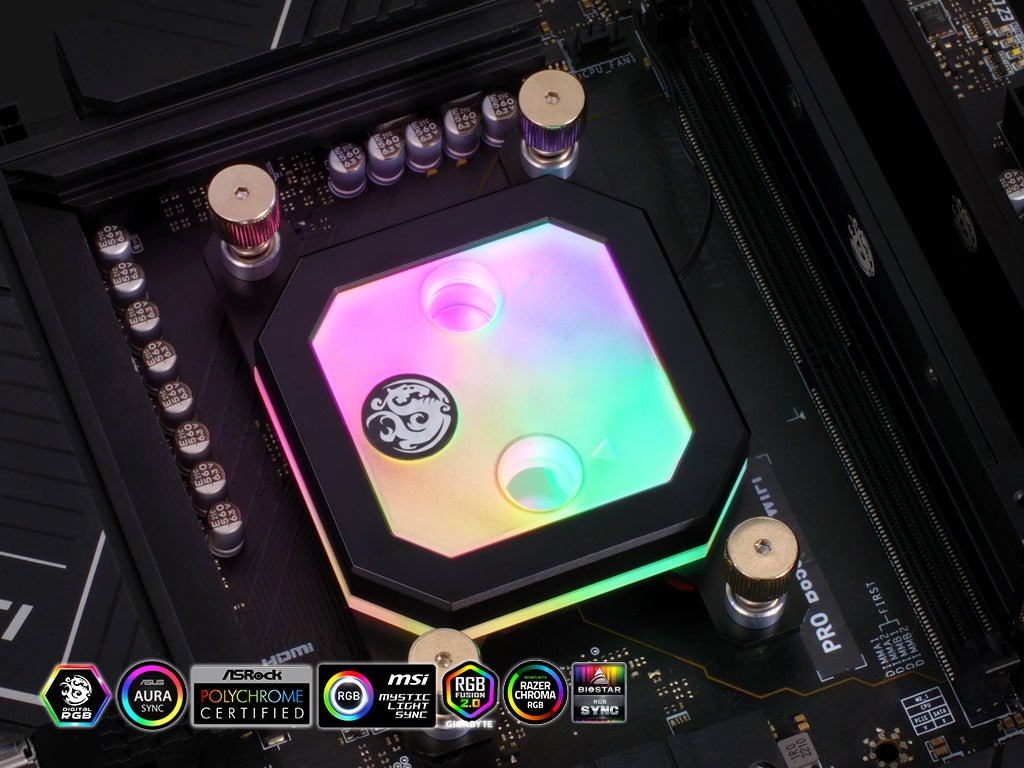The frosted acrylic top adds a subtle, premium touch. It diffuses lighting evenly, creating a soft glow that highlights your system without harsh reflections or bright spots. This gives the block a balanced look that works well in both RGB-heavy and minimal builds.
