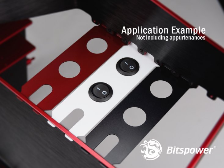 Bitspower dual PCI bracket is perfect for using two neighboring PCI slots for adding through-type fittings or even just straight tubing. Before using you must trim the divider between the two PCI slots. May install two Bitspower center to edge flood/broken hole attachment (This product does not contain Bitspower center to edge flood/broken hole fittings)