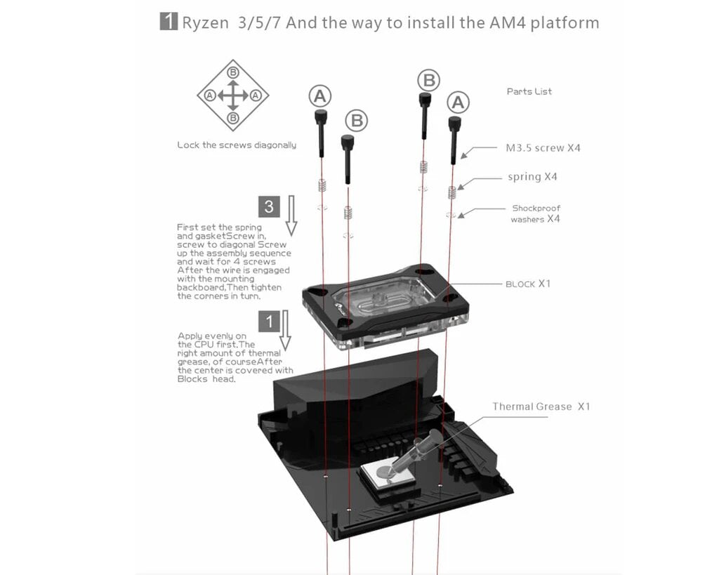 The block base is electroplated to prevent oxidation. The top is highly polished PMMA with a black accent cover that isn't in contact with coolant. A high flow design is achieved using 0.5mm channels. This creates good heat dissipation and allows for maximum performance.