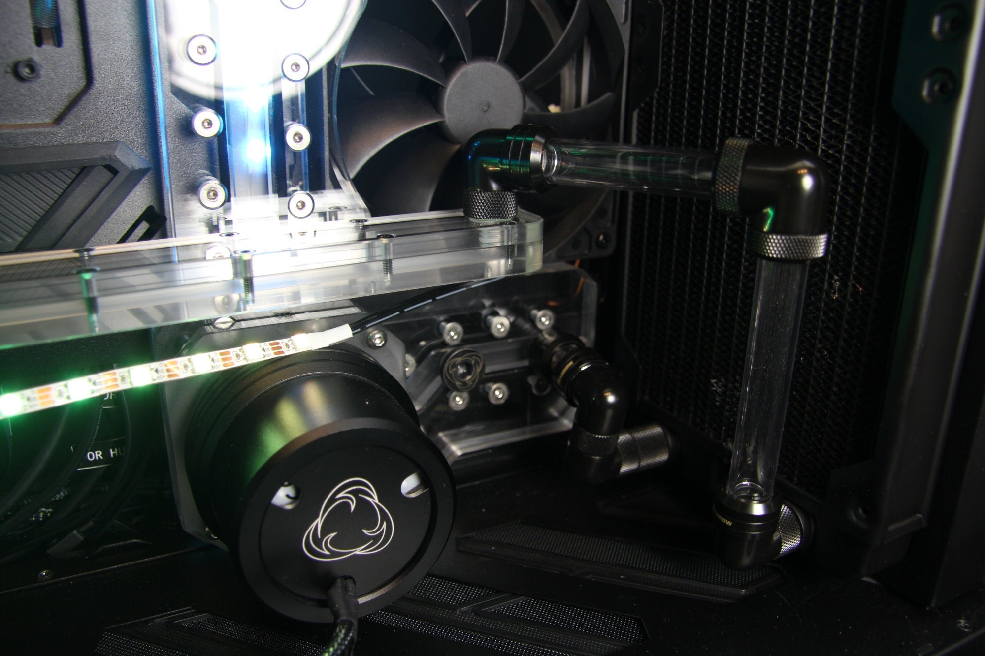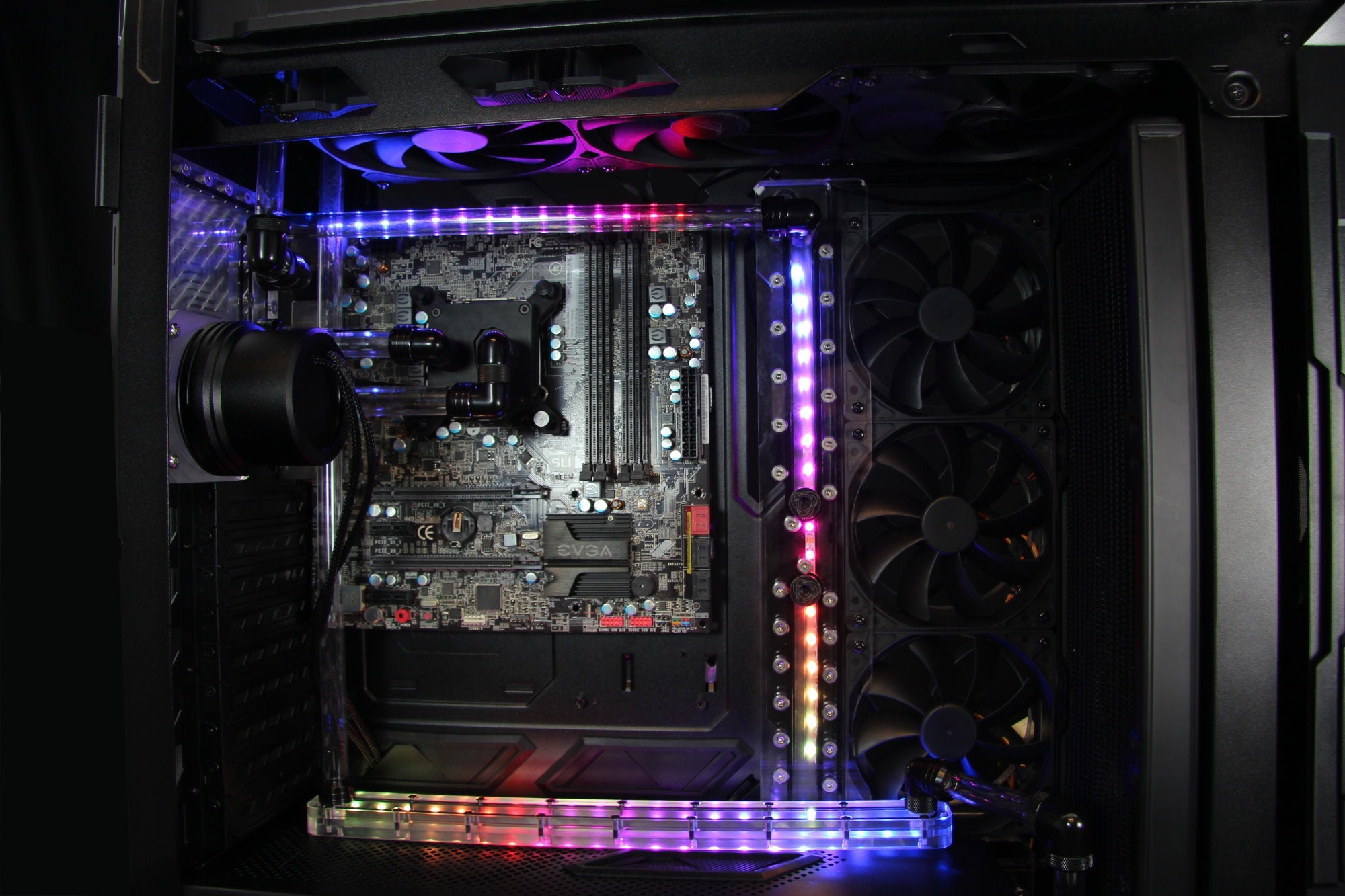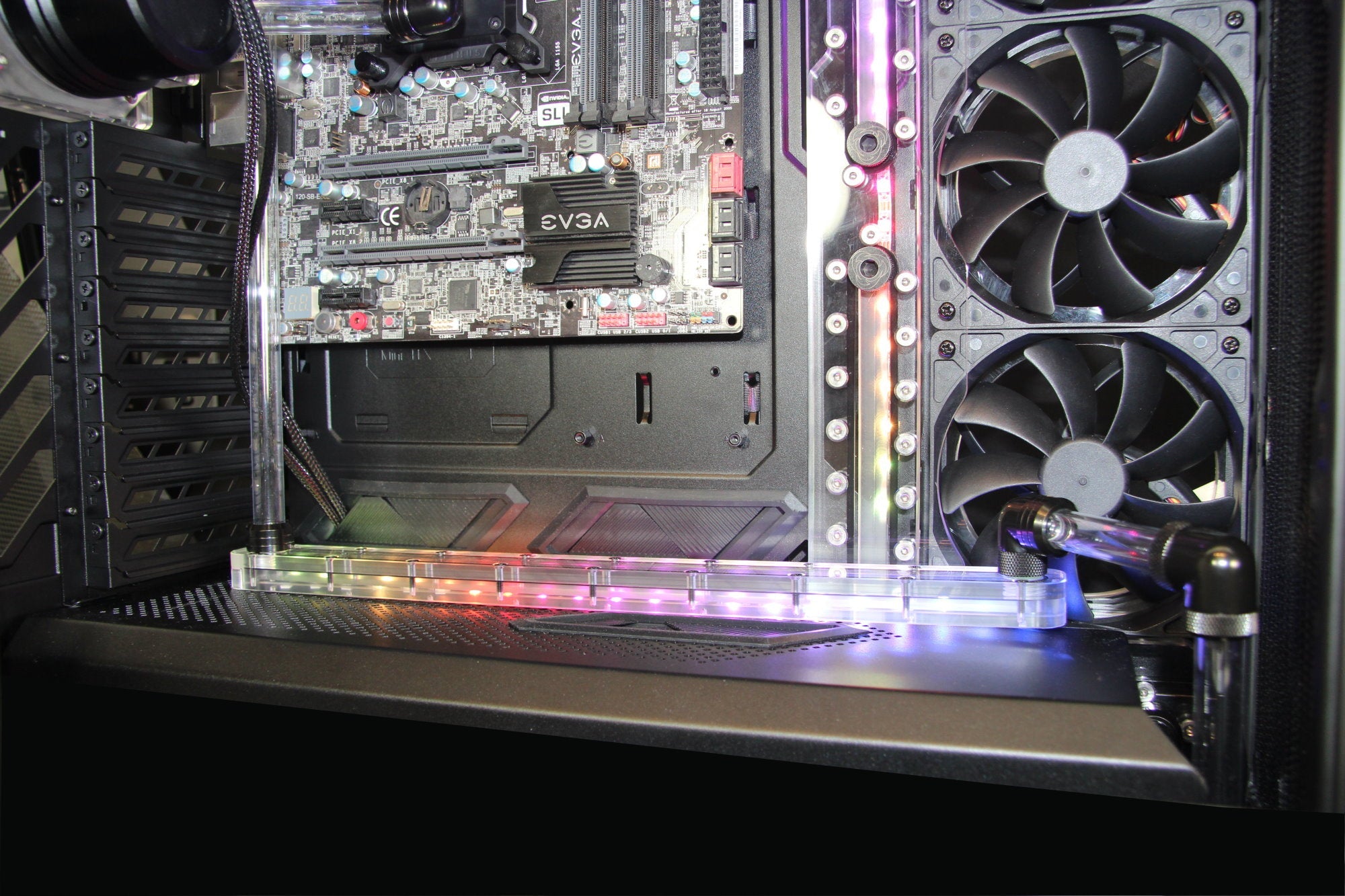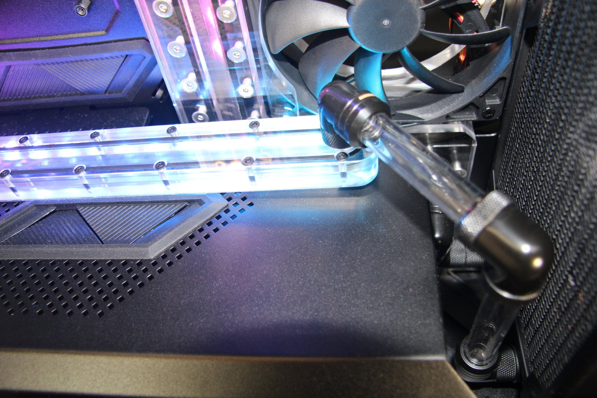 This distroplate pump res combo set is specifically designed to fit into the ASUS ROG Hyperion GR701case on the side next to the motherboard (center), and the back inside panel. Featuring 14 Ports total, designed to be used with 2 x 420mm radiators! Distroplates include integrated D-RGB strips for stunning lighting effects. This distro plate is compatible with standard D5 or DDC pumps. This distroplate set was design with a new compact D5 pump mount due to the marrow space used in the chassis for mounting. We carefully designed the center distroplate to have scalloped sides so that none of the center 120mm fan mounts are interfered with so that you can maximize your chassis airflow! Not included but seen in some of the images is a Stealkey Customs CubeTube 360mm. This is perfect for mount on top of the PSU shroud to return the loop from the front to the back. Visually its more interesting and attractive to look at vs. just another lateral tube. You can add this as an option below. Included with the 2 distroplate set is the spacer mount that goes between the 3 center 120mm fans and the actual distroplate. Enjoy this beautiful Channelz™ set and optimize the ROG GR701's cooling today!