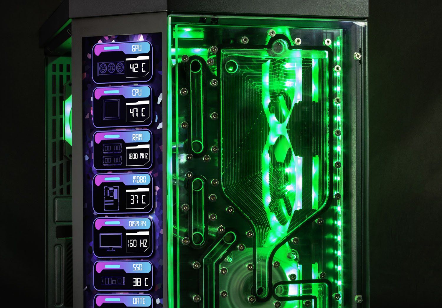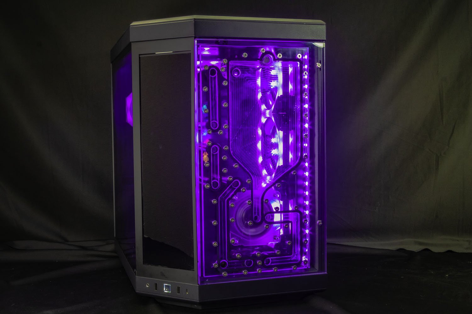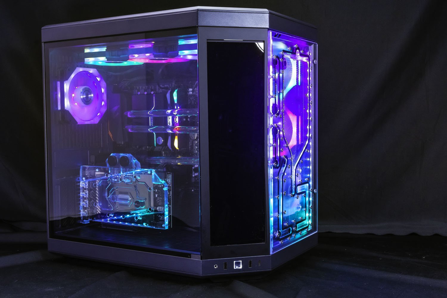 This distroplate pump res combo is specifically designed to fit into the Hyte Y70 case Replacing the front glass. Featuring 10 Ports total, designed to be used with 2 radiators and integrated D-RGB for stunning lighting effects. This distro plate is also compatible with standard D5 or DDC pumps. This distroplate was carefully designed to allow for completely straight hard tubes for that perfect aesthetic look!
