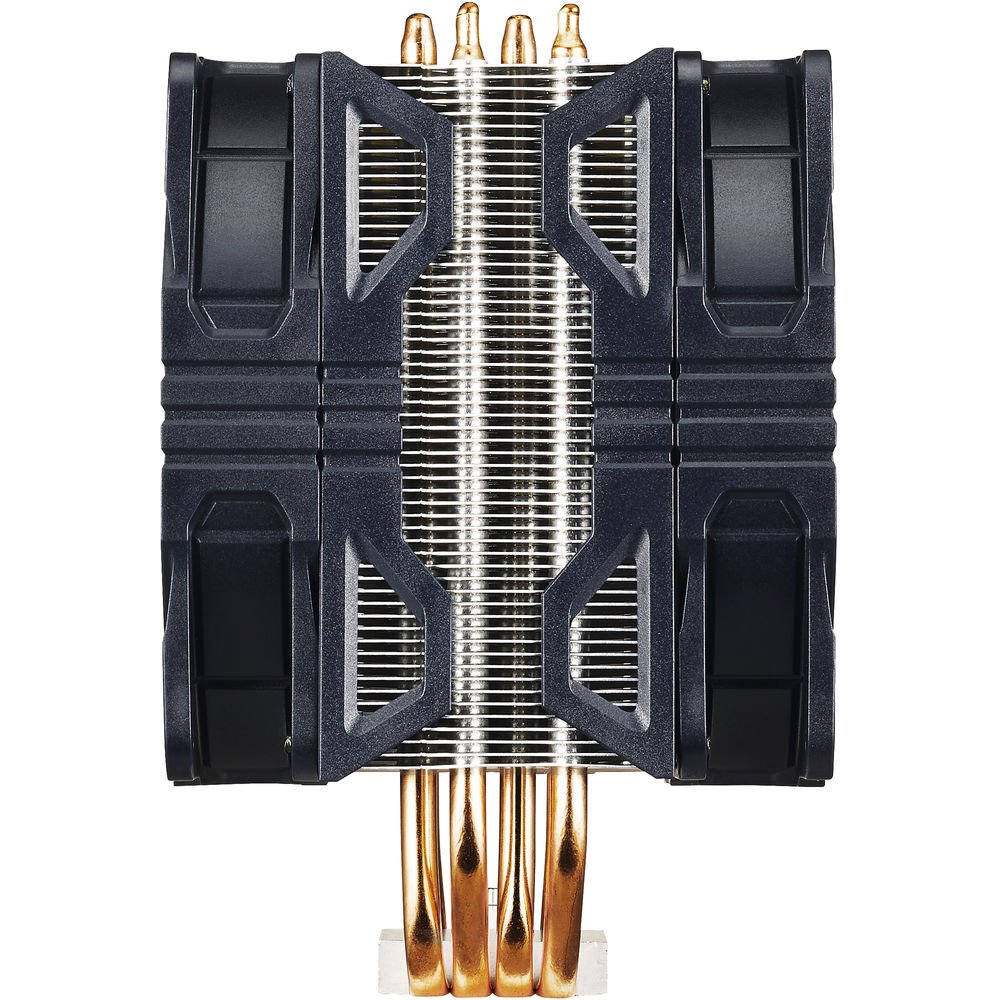 The CoolerMaster Hyper 212X CPU Cooler features a tested design for efficient cooling. In this revision, the aluminum fin array adopts X-Vents and Air-Guide designs to direct heat away. Its four direct-contact copper heat pipes pass through an aluminum fin array to form an efficient system. The included fans feature redesigned blades to increase airflow while reducing noise. Moreover, a push-pull configuration tends to have better performance than with a single-fan equipped cooler. A set of mounting tools are included with this cooler for Intel and AMD compatibility.