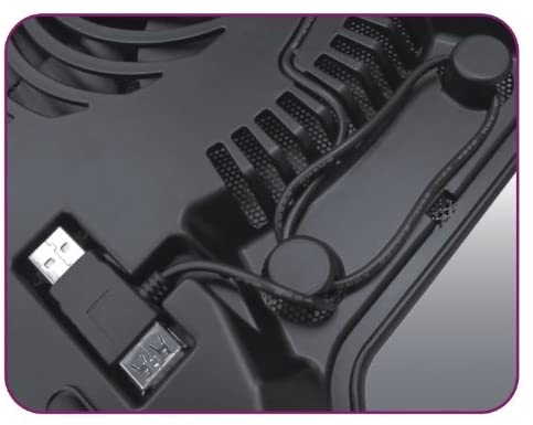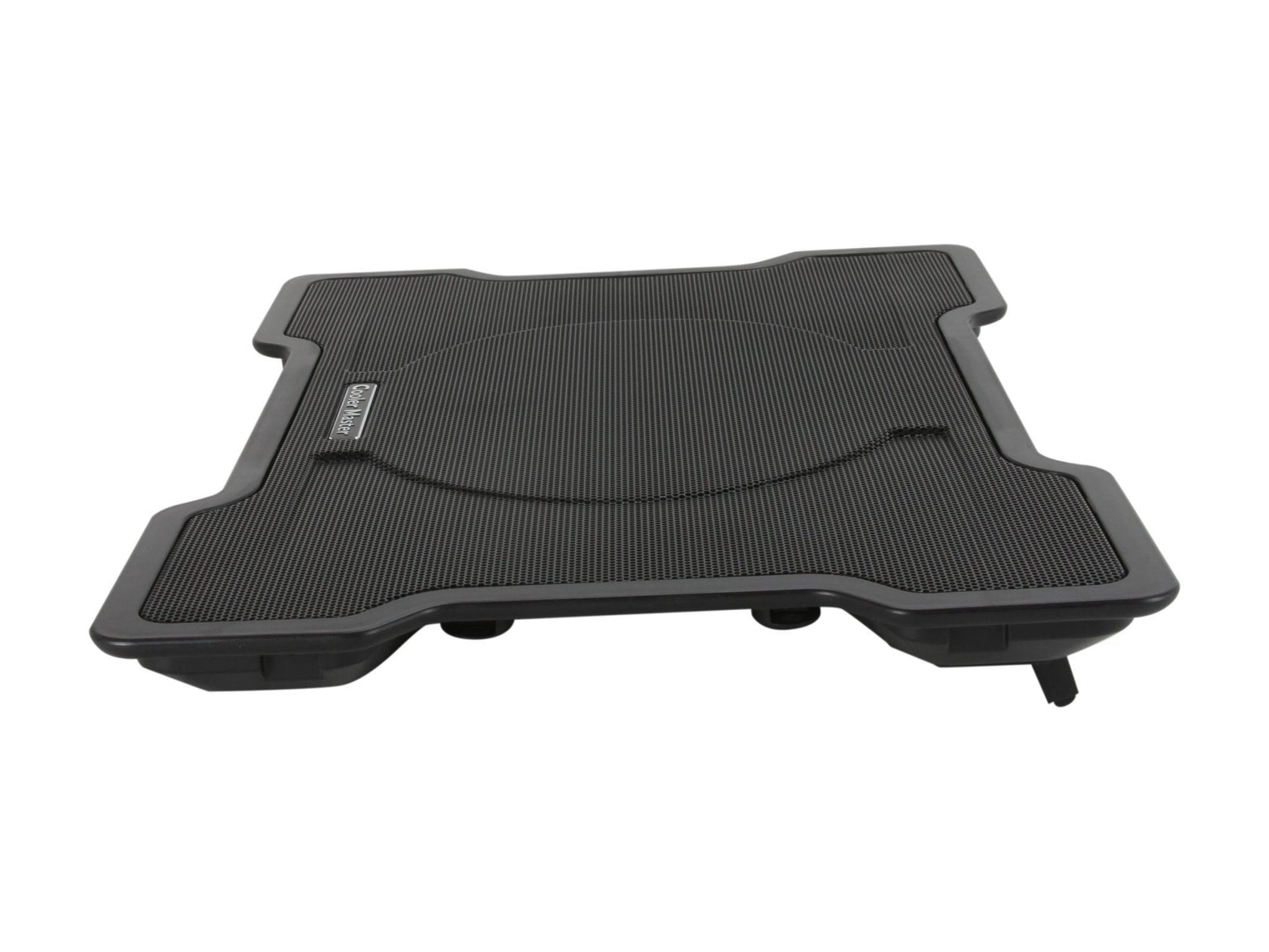 The black Notepal X-Slim Cooling Stand from CM Storm is designed to support laptops with a diagonal screen size between 7 and 17 inches. The stand features a fan to help keep your laptop running cool, and has a fully meshed surface for superior airflow. The height of the stand is adjustable, with two different settings that allow for an ergonomic viewing and typing angle. Grooves on the stand are designed to route a USB cable, so it will stay out of the way and keep your workspace looking tidy. Additionally, the cooling stand features a compact form factor and weighs just 1.5 pounds for maximum portability.