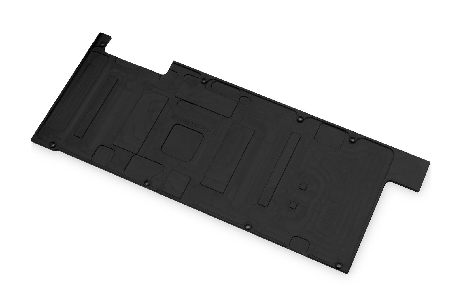 EK-Pro GPU WB RTX A5000 – Nickel + Inox Rack water blocks use an Open Split-Flow cooling engine design that proved to be a superior solution for GPU water blocks. It is characterized by low hydraulic flow restriction, which means it can be used with weaker water pumps or pumps running on low-speed settings and still achieve top performance. The lowered coolant flow requirement makes it an ideal solution for multi-GPU workstations. The jet plate and fin structure geometry have been optimized to provide consistent flow distribution with minimal losses and optimal performances, even when used in reversed water flow scenarios.