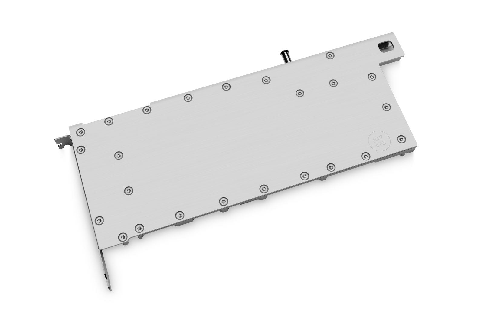 To improve the graphics card’s stability and protection, the I/O plate is now a part of the water block top itself. This means that the block replaces the stock I/O shield and adds more sturdiness to the whole assembly. The integrated single-slot I/O plate also benefits more compact workstation and server environments, where space and PCIe slot spacing is at a premium. This design enables the card to consume only a single PCIe x16 slot, leaving its surrounding slots available for other add-in cards.