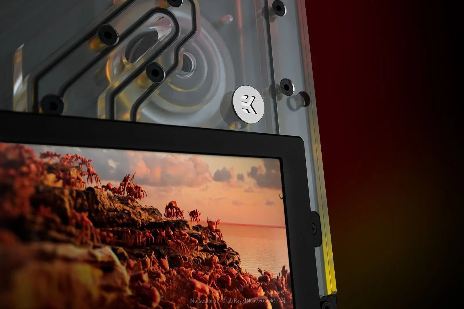 Engineered to be mounted on the front window of the O11D XL case, the EK-Quantum Reflection² PC-O11D XL D5 PWM D-RGB Screen Edition fits elegantly within the LIAN LI O11D XL chassis. The front shows off a beautiful 7" screen that can display anything a user decides as it acts as a secondary monitor. The Lumen screen has a wide SVGA resolution of 1024 x 600 pixels. Its diagonal is 7 inches long, with the IPS panel type for superior viewing angles and vivid colors. It connects to the PC through HDMI 2.0 cable that is included in the package and an internal Type-A USB 2.0 port. The frame of Lumen is CNC-machined out of a single large chunk of 20mm-thick aluminum that is 195mm long and 115mm wide.