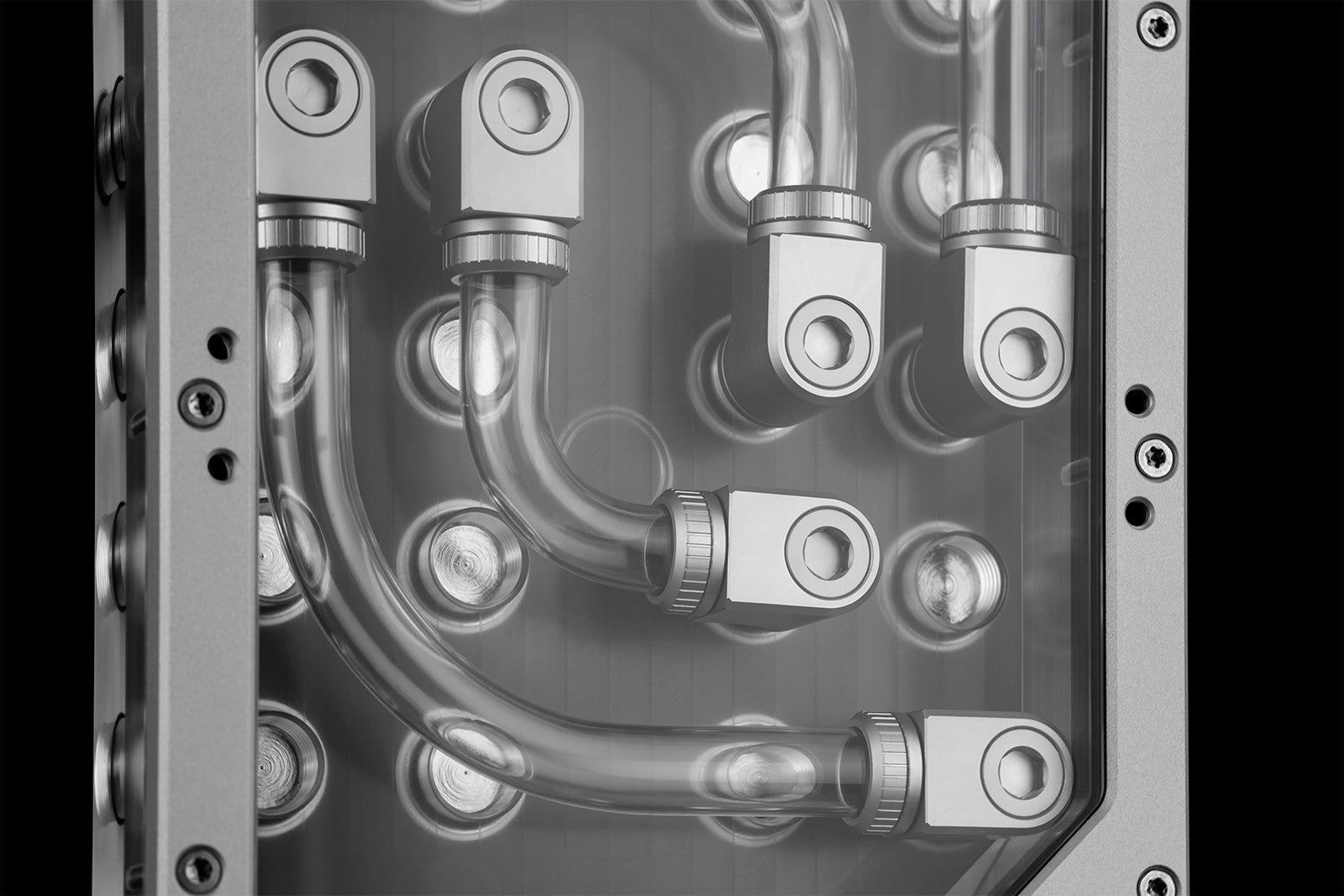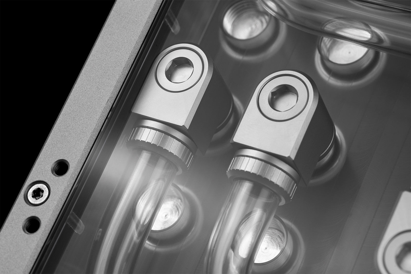 EK-Matrix7 standardizes the productsâ?? dimensions, including the port position and spacing, making liquid cooling loop assembly easier and more intuitive than ever. EK-Quantum distribution plates follow the EK-Matrix7 standard, enabling them to seamlessly integrate with the Vector² GPU water blocks, active backplates, and Quantum Surface radiators. This means the user will spend less time planning the loop and bending the tubes, resulting in an epic water-cooled build.