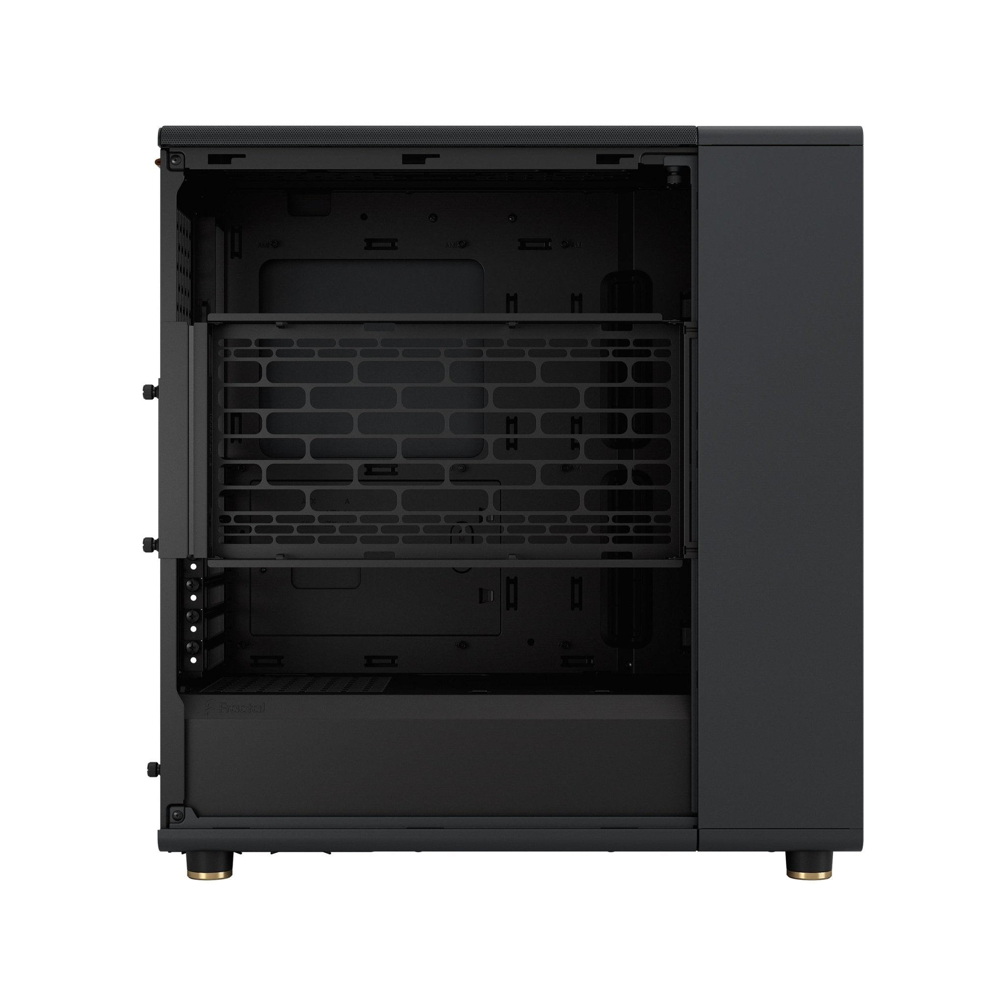 North reimagines the gaming PC, introducing natural materials and bespoke details to make gaming a stylish addition to the living space. Fusing design and airflow engineering, the case features fine-patterned mesh ventilation and an open front with real walnut or oak panels. The design is complemented by sleek brass or steel details and an integrated tab for easy access to the top of the case. Inside, North offers an intuitive interior layout and generous compatibility.