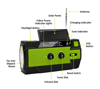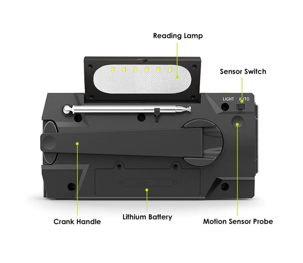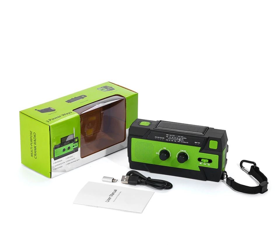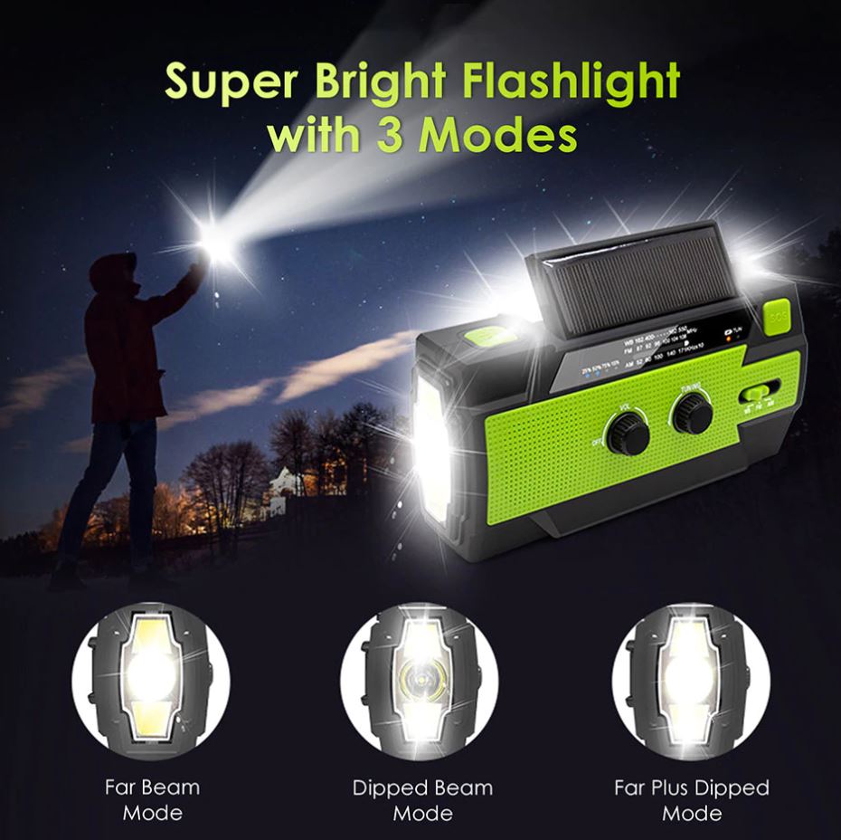 ã?2020 Upgraded Emergency Radioã??This emergency flashlight radio is more powerful than the best-selling 090 on the market. The main upgrade points are 4000mAh super large battery, visualized percentage of battery surplus, reading lamp upgraded from 4 to 6 LED beads, 3 flashlight lighting modes and 2 reading lamp modes. This is the most powerful 10 in 1, practical and cost-effective emergency weather radio in history. â?¢ã?4000mAh Biggest Capacity Batteryã??The 4000mAh large capacity battery of emergency radio cellphone charger is twice or even four times that of other weather emergency radio, which is the biggest capacity in the weather radio's market. You will never image the battery capacity of the crank flashlight radio is large than iPhone 11 max. Better solve the problem of crank solar radio battery life and charging mobile phone in case of emergency situation. â?¢ã?4 POWER Charging Modelã??Hazard weather always lead to power outages and you would like to have this portable emergency radio. Hand crank and solar power these two power sources can power the weather emergency radio when you need in emergency. USB fast charging is the main power way in daily use. Rechargeable battery can be replaced and you can find it in any stores and supermarket. Power up anytime and anywhere. â?¢ã?Super-Bright 3 Mode and Reading Lampã?? If you are an outdoor sports enthusiast or need to walk in a place without lights, Waterproof IPX3 Radio with a three-mode flashlight is a good choice. Its farthest lighting distance is more than 10m, which is more than other most emergency solar radios. In addition, reading lights with motion sensors will greatly help you get up at midnight and avoid waking up your family. â?¢ã?A Life Saver Radioã??When natural disasters come, such as hurricanes, snowstorms, etc., how can we prevent them? When the whole city is blackout and falls into darkness, how can we spend this dark night? When we are trapped in natural disasters, how can we save ourselves? You only need an emergency flashlight radio, with 7 NOAA stations and rechargeable & replaceable 4000mAh battery, plus the hand solar phone charger and SOS alarm. Don't be afraid of all kinds of emergencies.
