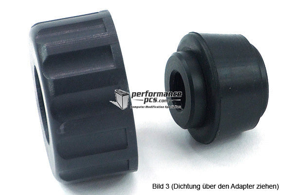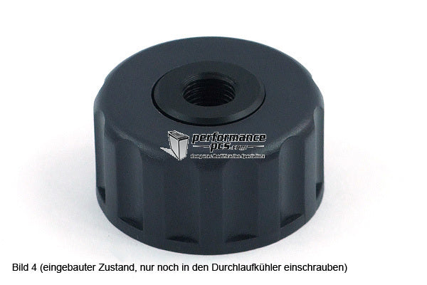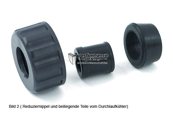 Special adapter for ultra-through cooler. The adapter is bolted in place above the hose connection with the plastic nut and seals on the radiator when passing from the supplied gaskets.