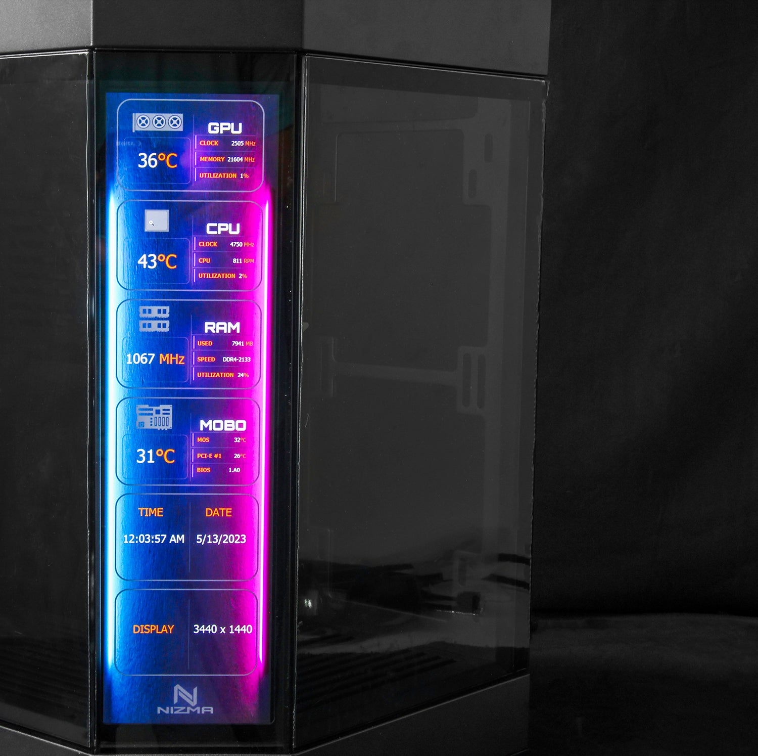 Looking to further the personalization on your next Rig? Then check out our Hyte Y60 case with included Mini Monitor. Choose between a touchscreen or regular mini monitor to enhance the overall look of your build. Don't have a 3d printer or laser to make a bezel for it? Don't worry we have taken the liberty to cut and install the monitors into a bezel so that they replace the corner glass or sit right behind it depending on the version you choose. We do all the work for you so it's all ready to go!!