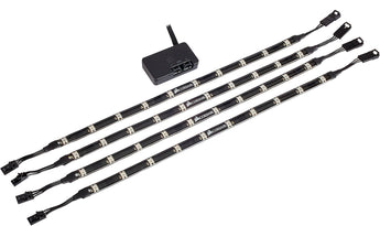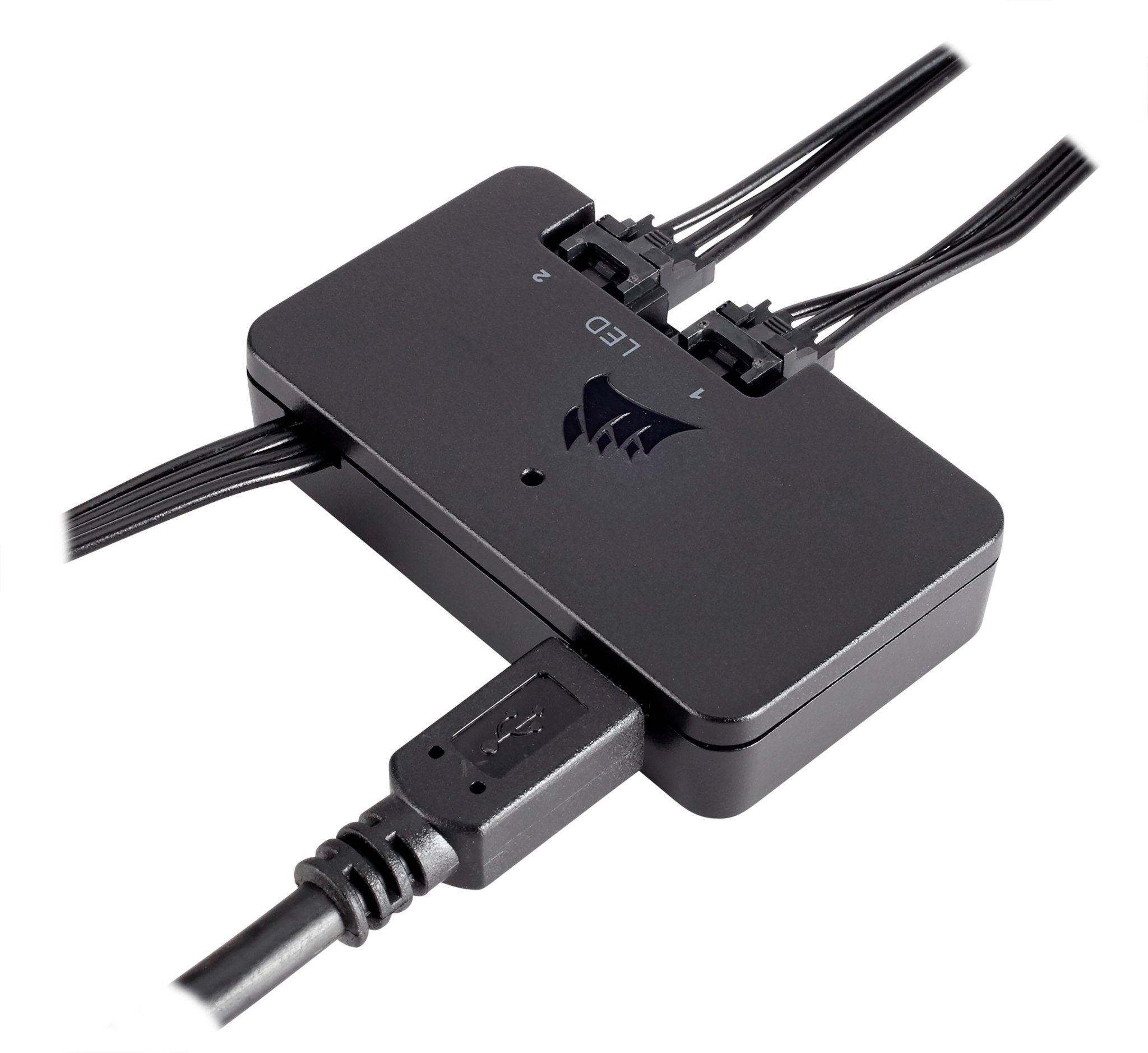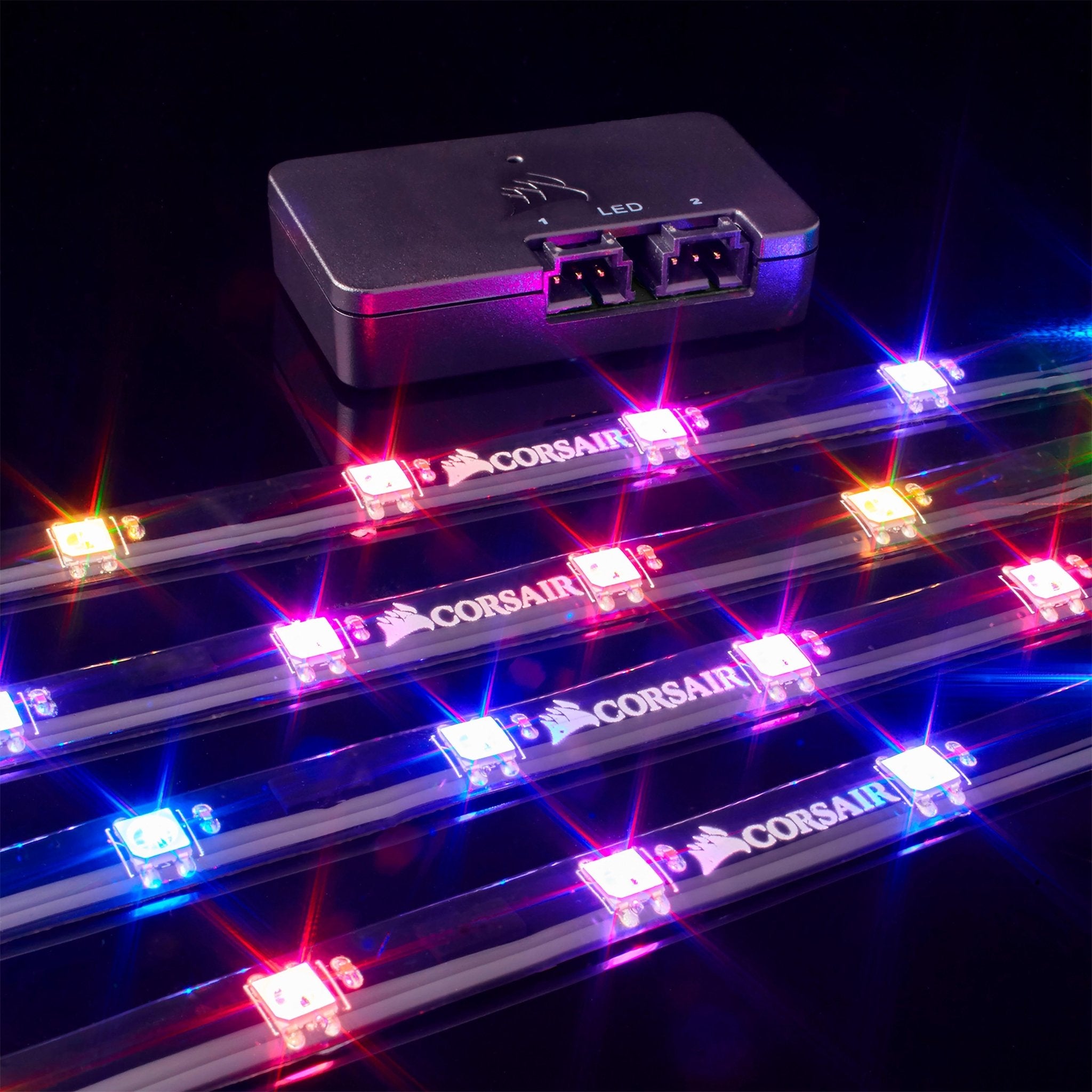 Customize your computer with this Corsair lighting node. Its four RGB LED strips work independently to showcase different lighting effects, and they adhere easily to your PC via their mounting tape backings and magnets. This Corsair lighting node has a USB 2.0 interface, so it plugs into the motherboard.