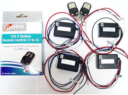 12V 4 Station Remote Control (1 to 4) Wireless remote On/Off control switch for 12V DC supply.