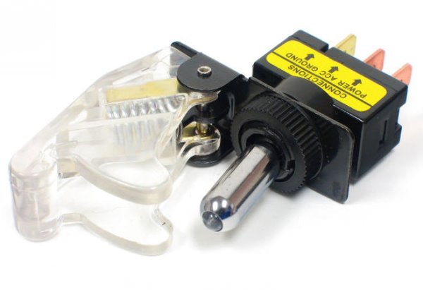 The Military rocker switches currently offered are of either the lighted illuminated or non-illuminated toggle switch variety. Each Toggle switch comes with a choice of a colored guard.