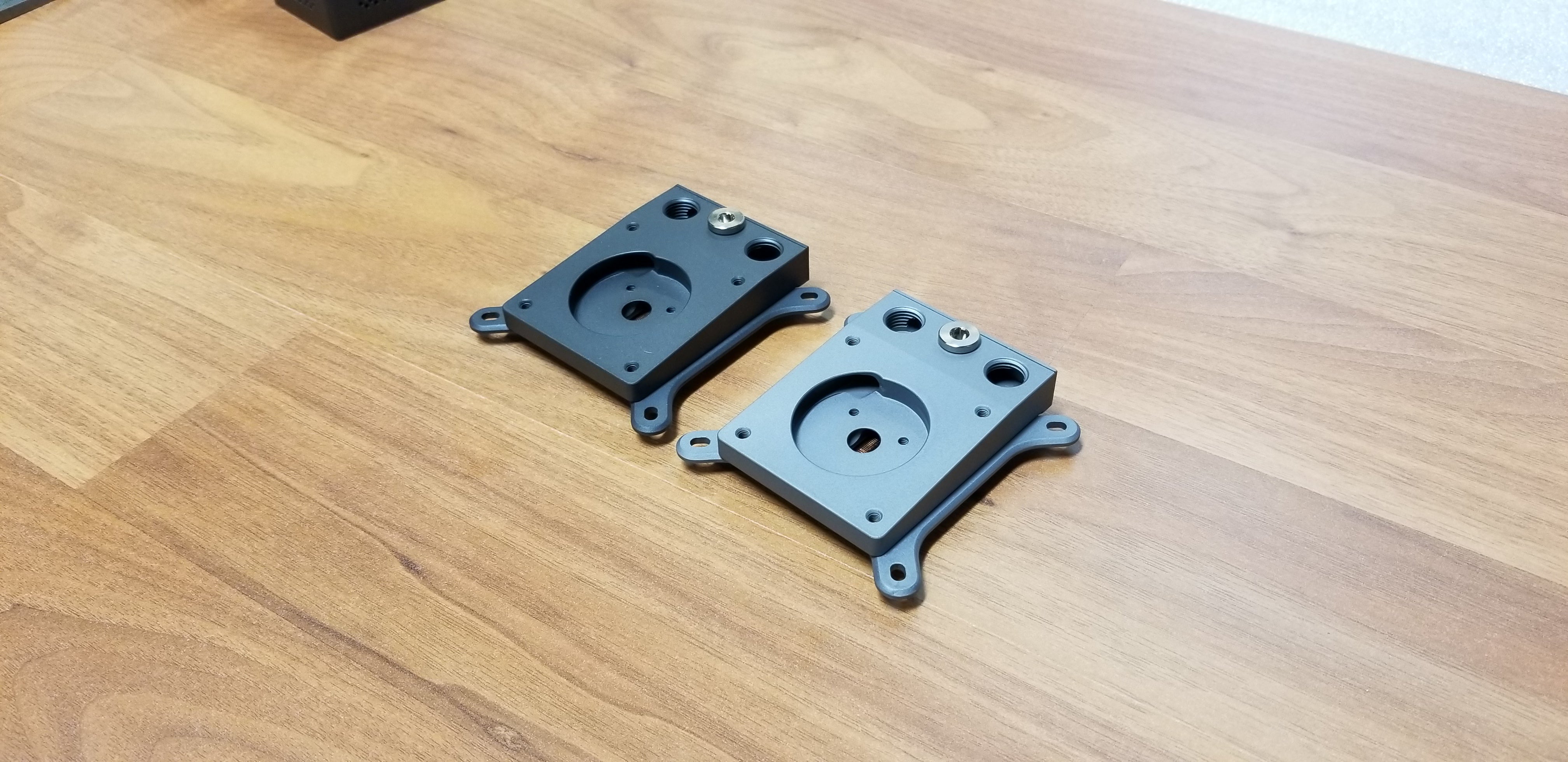 The LOBO uses Cerakote Elite series coatings for their pleasing appearance and superior corrosion resistance. Cerakote is not a cheap finish but has been shown to be one of the best available. Cerakote is applied to the mounting brackets, cover plate, pump body and heatsink. Our cold plate is natural copper.