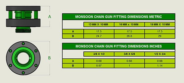 Monsoon Chain Gun Hardline Compression Fittings, 3/8" x 1/2" - Blue