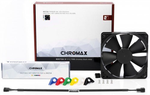 Maximising colour choices, Noctuaâ??s chromax.black.swap edition fans can be colour-customised using the included swappable anti-vibration pads as well as optional anti-vibration mounts and cables. This makes them ideal for enthusiasts looking for true premium-grade fans that can be colour-coordinated with popular build themes such as all black, black & white or black & red.