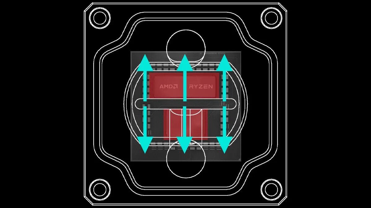 Made for performance-first, the Foundation block's design allows the liquid flow to match the 5000 series Ryzen CPU die layout perfectly (see left).