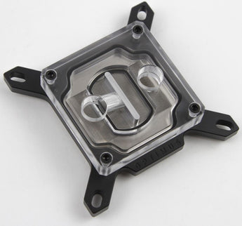 The Optimus Foundation V2 features an integrated jet design to force fluid through the fins to maximize contact. Other designs on the market use a cut steel jet plate to create pressure. While cheaper to manufacture, the steel jet plates often rust and cause galvanic corrosion when in contact with the fins, causing problems in the loop. By integrating the jet design into the unibody block, the Foundation eliminates steel from the loop, reducing potential for rust and corrosion. Moreover, we're able to tailor the cold plate bow to match the CPU IHS perfectly.
