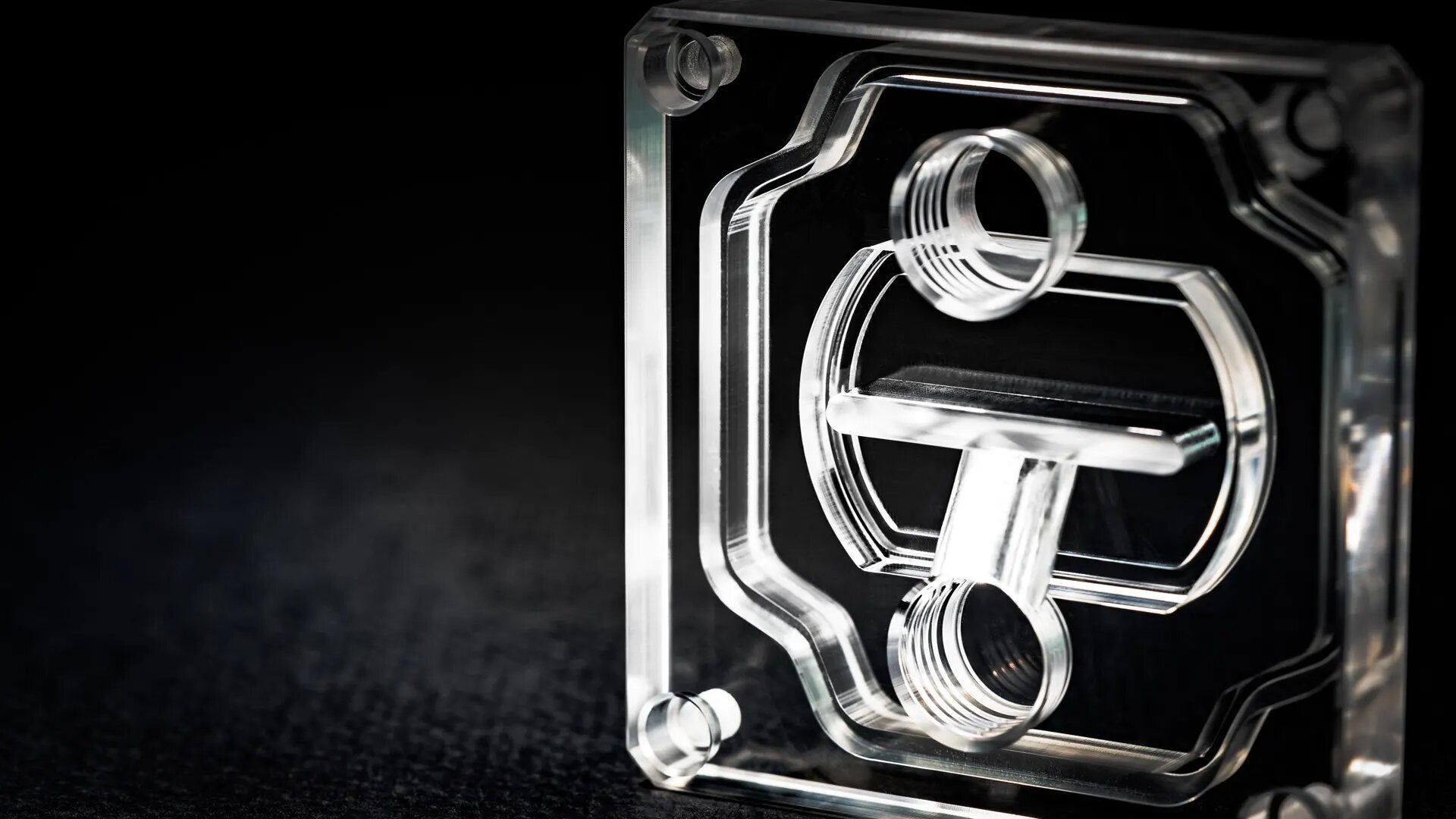 Additionally, we only CNC our G1/4â? ports, never thread tap. Thread tapping is the industry standard because itâ??s easy and any budget drill press can do it. Thread tapping works by twisting a threaded drill bit into the material, causing burrs and extreme levels of stress. The resulting thread tapping micro fractures are nearly invisible, until the acrylic meets water, heat and pressure. Then micro turns into macro and cracks appear.