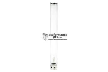 The top and bottom are made from solid metal and combined with a transparent tube made from Plexi. Shining gold plating or a black nickel finish are the first available colours. The reservoirs are available in 150mm and 250mm length, allowing use in virtually any case size.