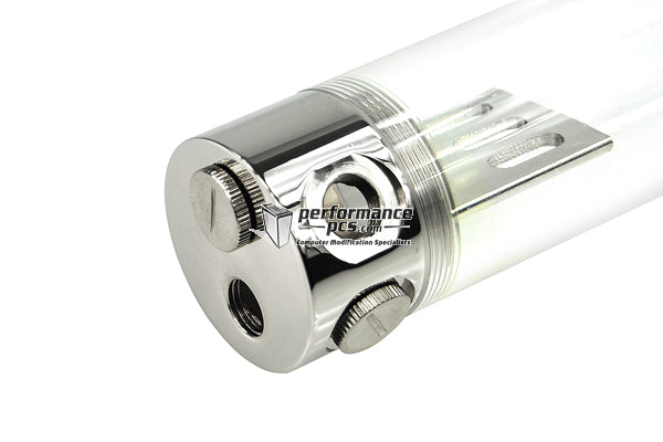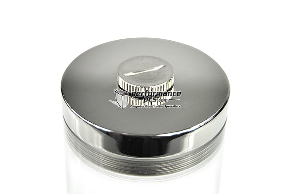 Versatility and functionality were a great factor when designing this reservoir. You will notice the large number of connection threads, two at the bottom and two at the side of the bottom piece, which allows a great variety of mounting possibilities. The threads at the side especially make horizontal installation of the reservoir easily possible, giving you a whole array of new possibilities. The fifth connection thread in the top piece can be used as an In- our outlet when installed horizontally or for connection of a Fillport etc. Another possibility is to equip the unused threads with lighting modules to shine a whole new light on your reservoir!
