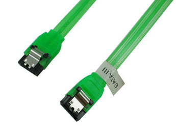 Serial ATA 3.0 600Mb/s Cable w/ Metal Latch - Straight to Straight Angle - 6" - UV Green