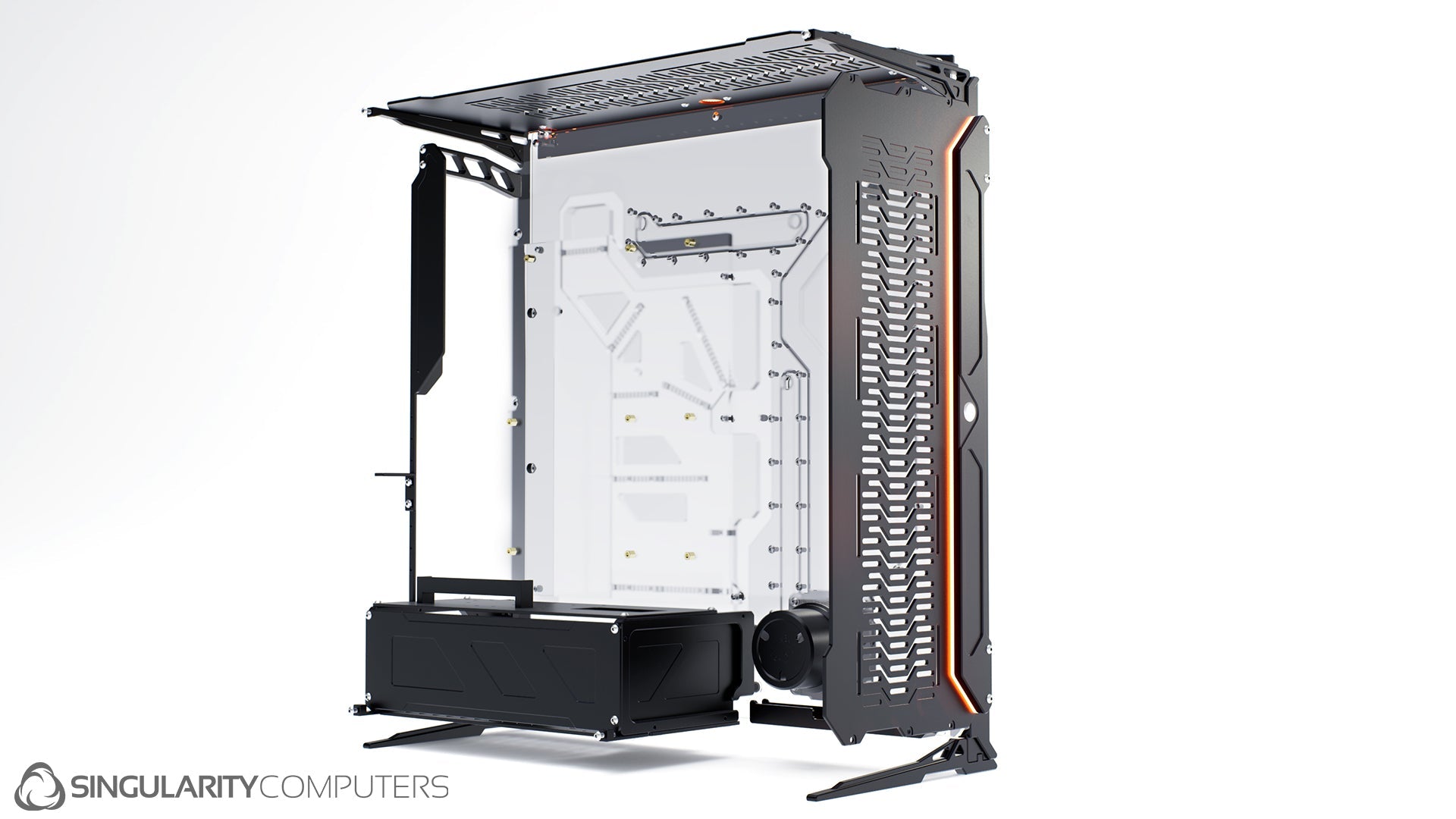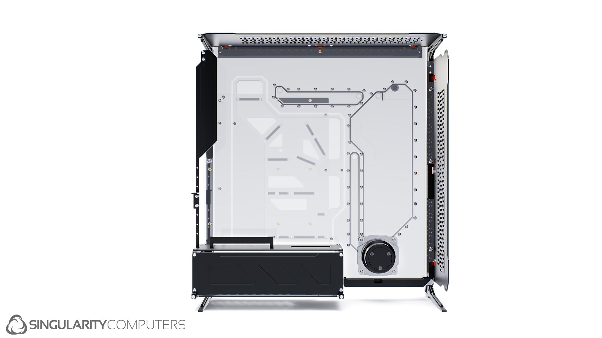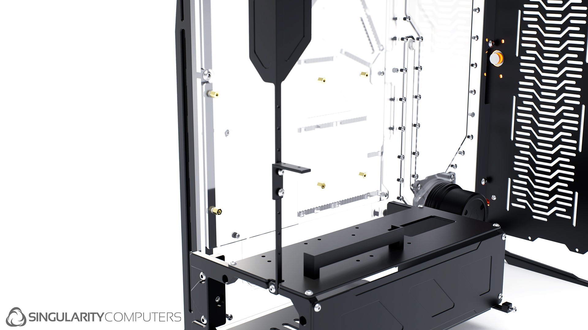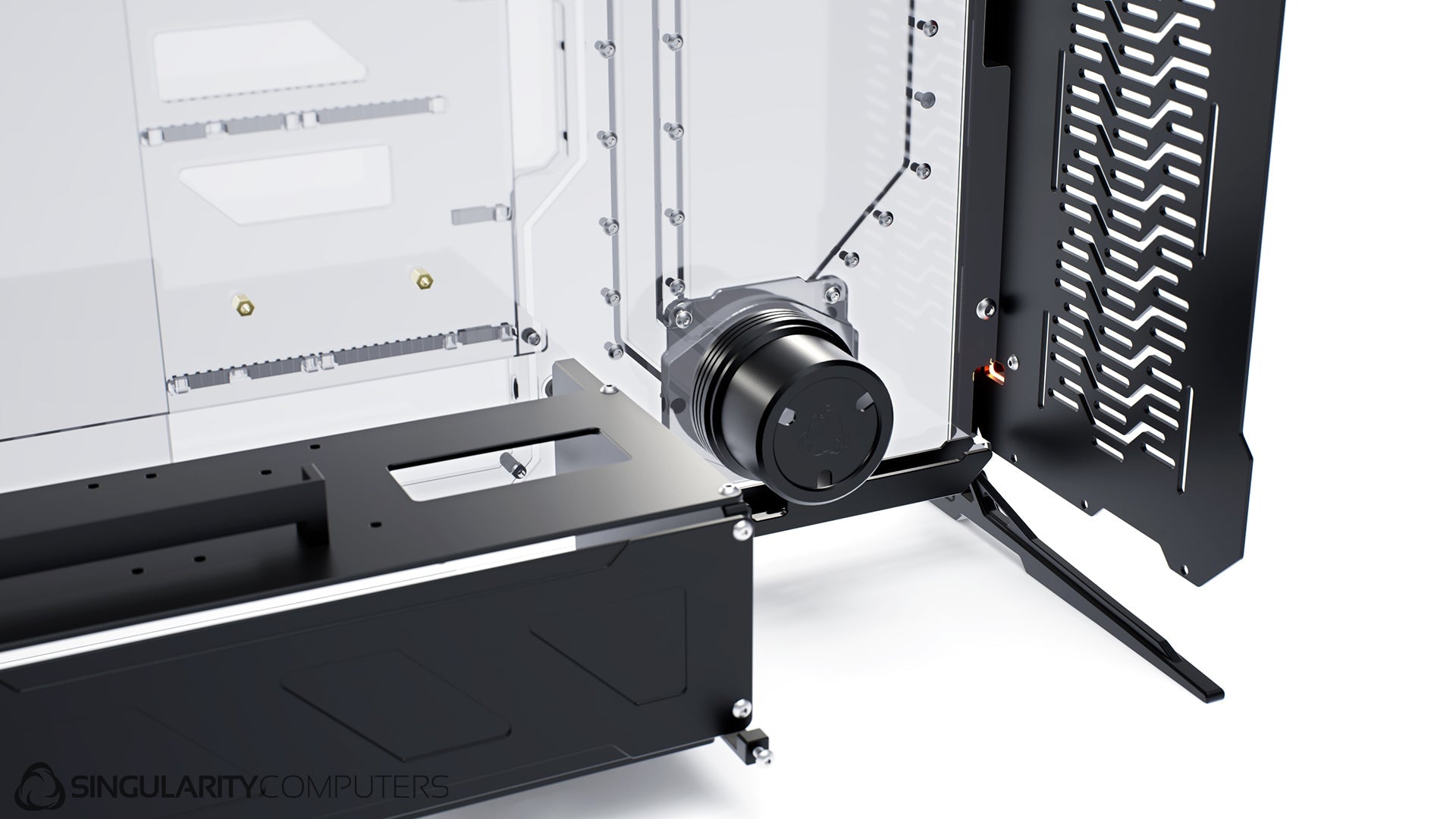 We are all experienced system builders at Singularity Computers. Our approach to product development begins with a need for our own builds and so the origin is always function. From there we start to build ideas around this function and the aesthetics and everything else follows. The original idea for Spectre came our years of building highly customized, high end water-cooled systems and trying to reduce the exceptionally long build times and complexity. Our approach to development is very hands on, we are doing real world testing every day.
