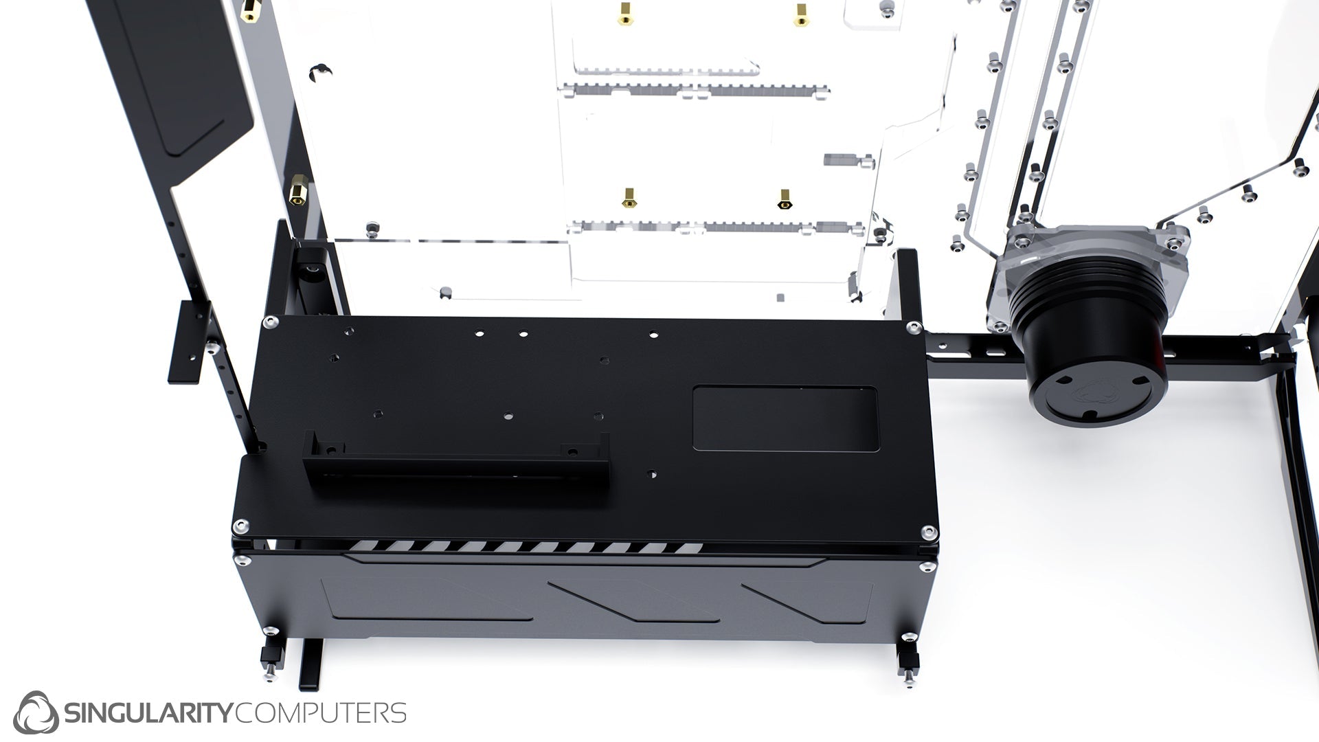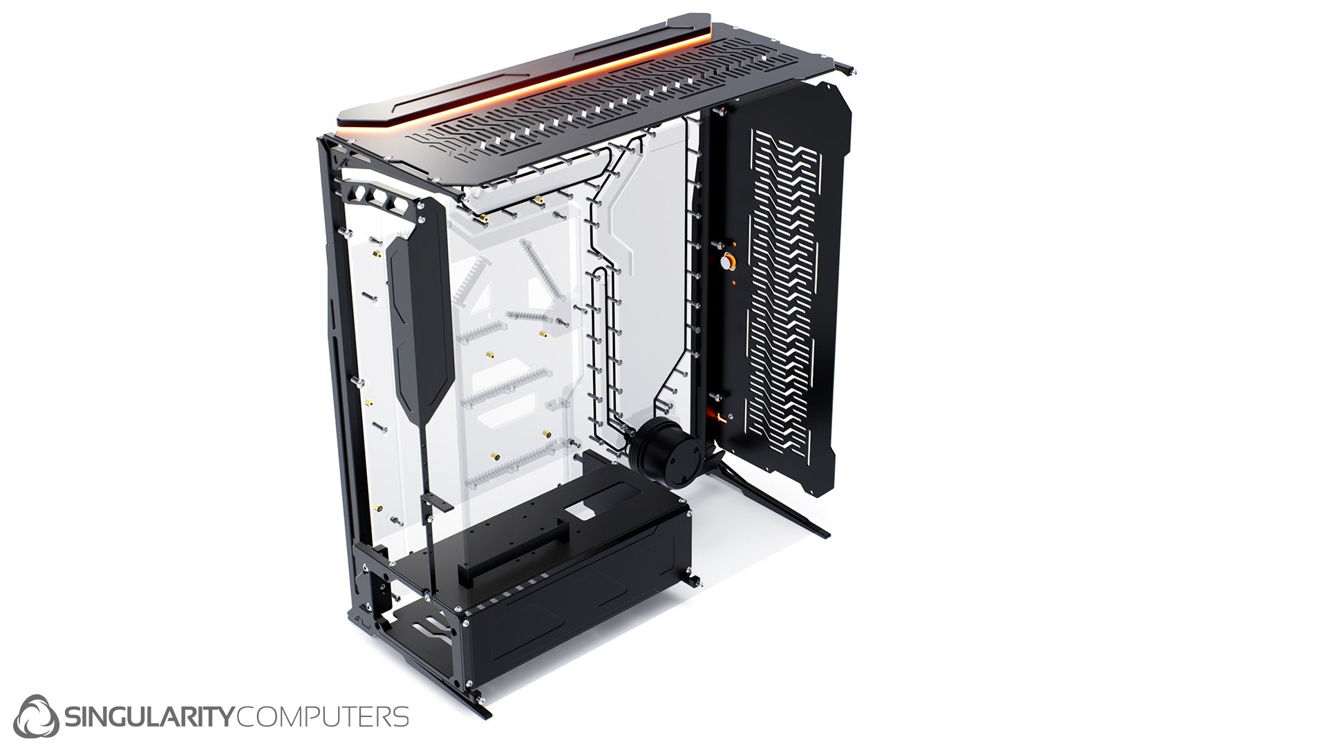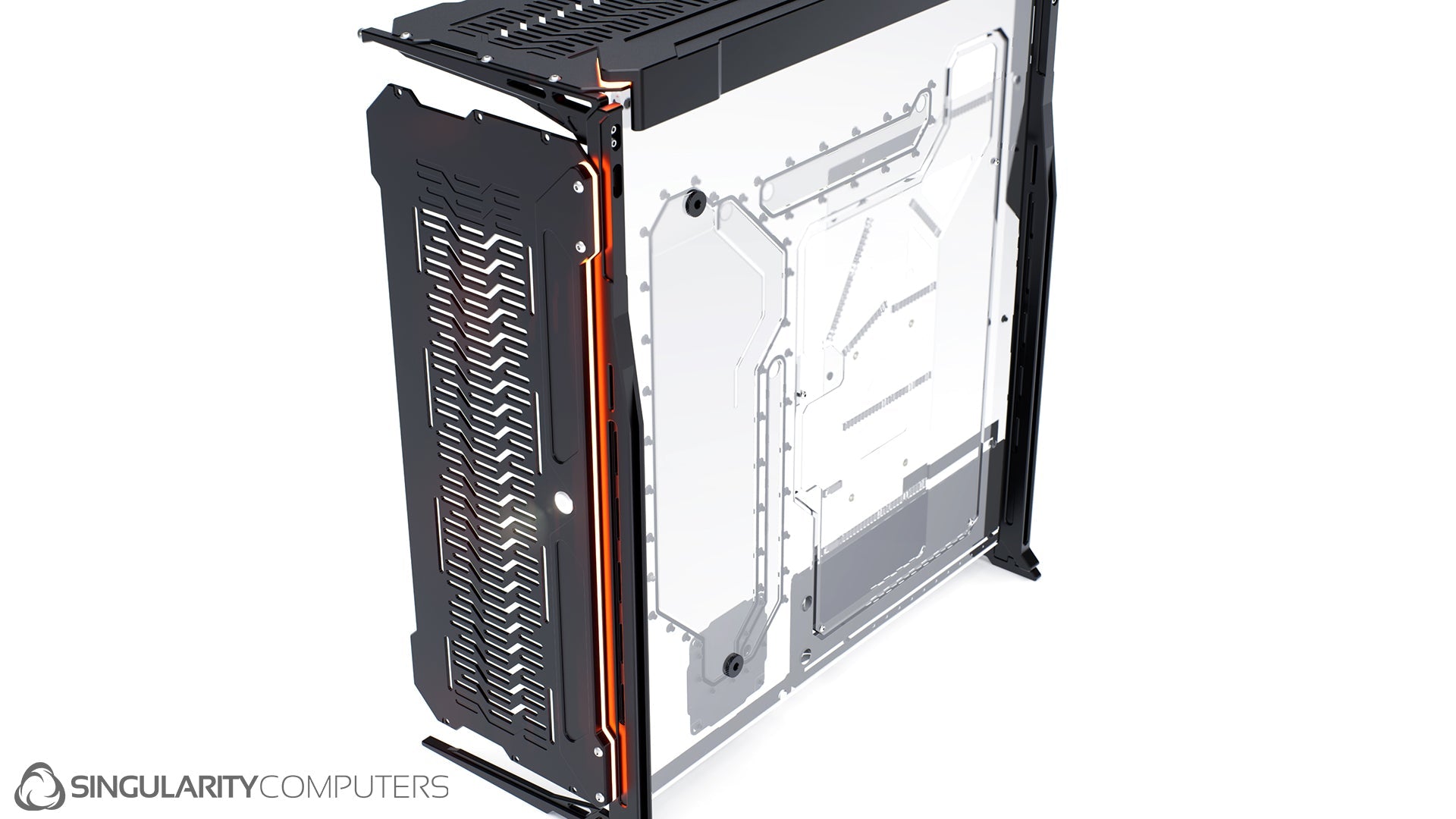 We are all experienced system builders at Singularity Computers. Our approach to product development begins with a need for our own builds and so the origin is always function. From there we start to build ideas around this function and the aesthetics and everything else follows. The original idea for Spectre came our years of building highly customized, high end water-cooled systems and trying to reduce the exceptionally long build times and complexity. Our approach to development is very hands on, we are doing real world testing every day.