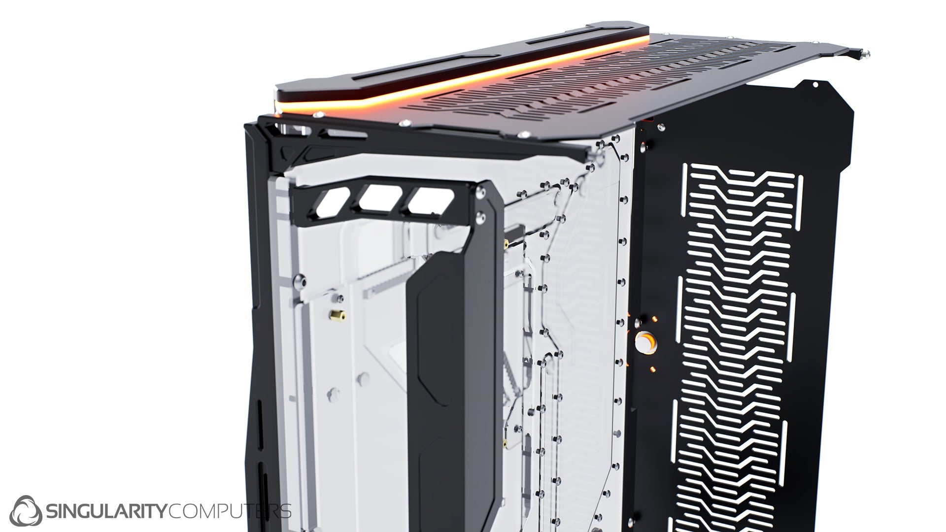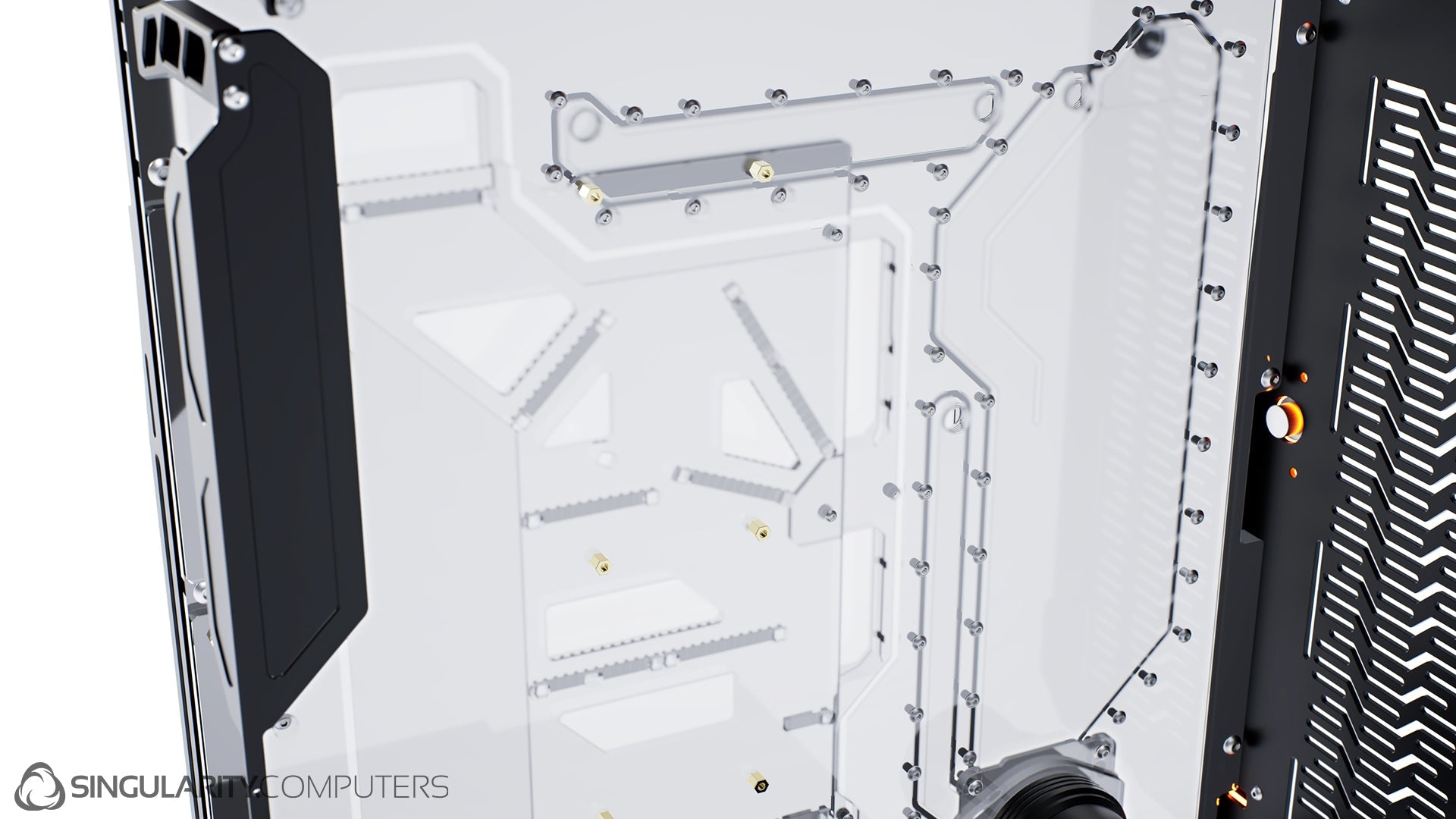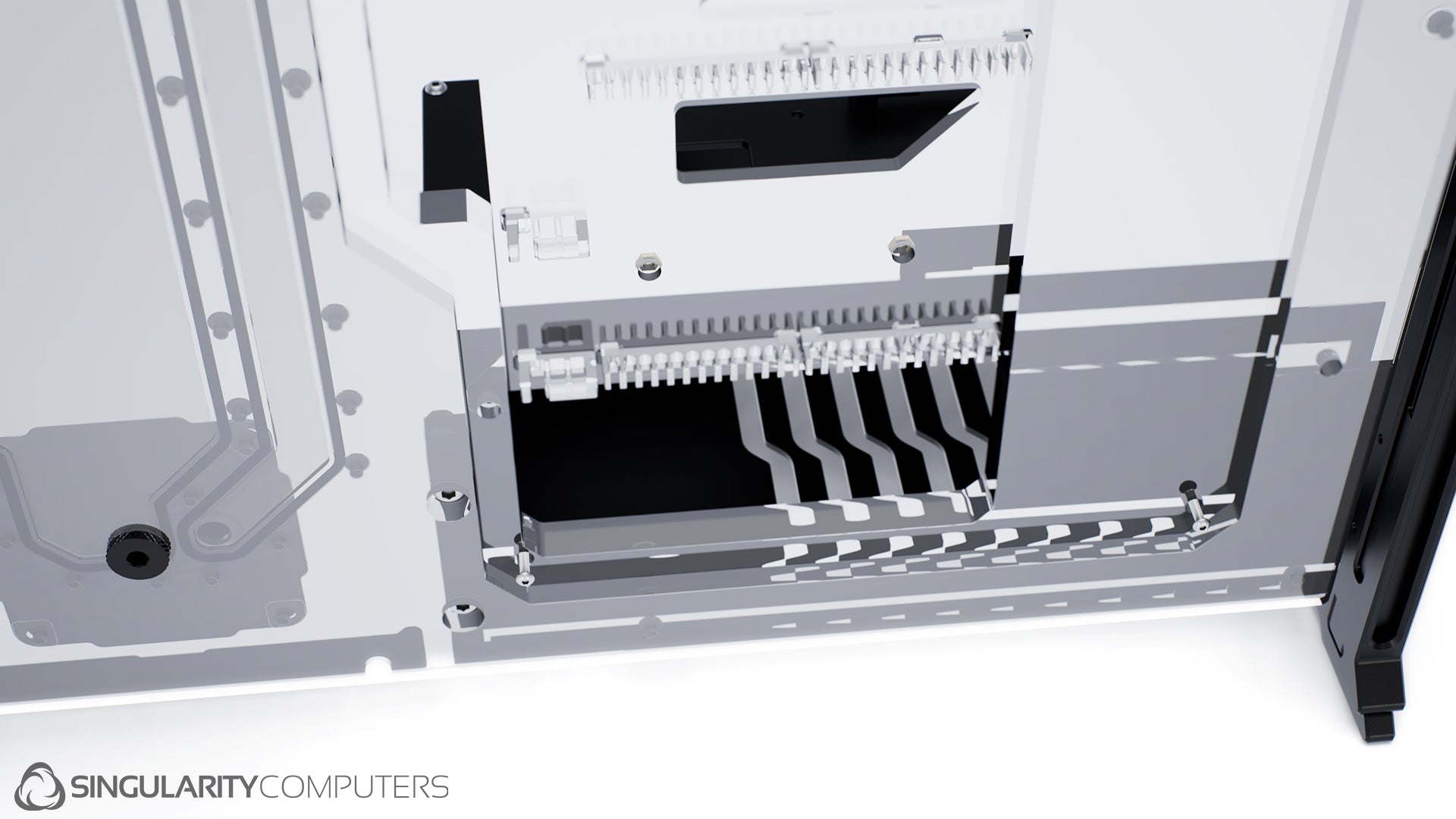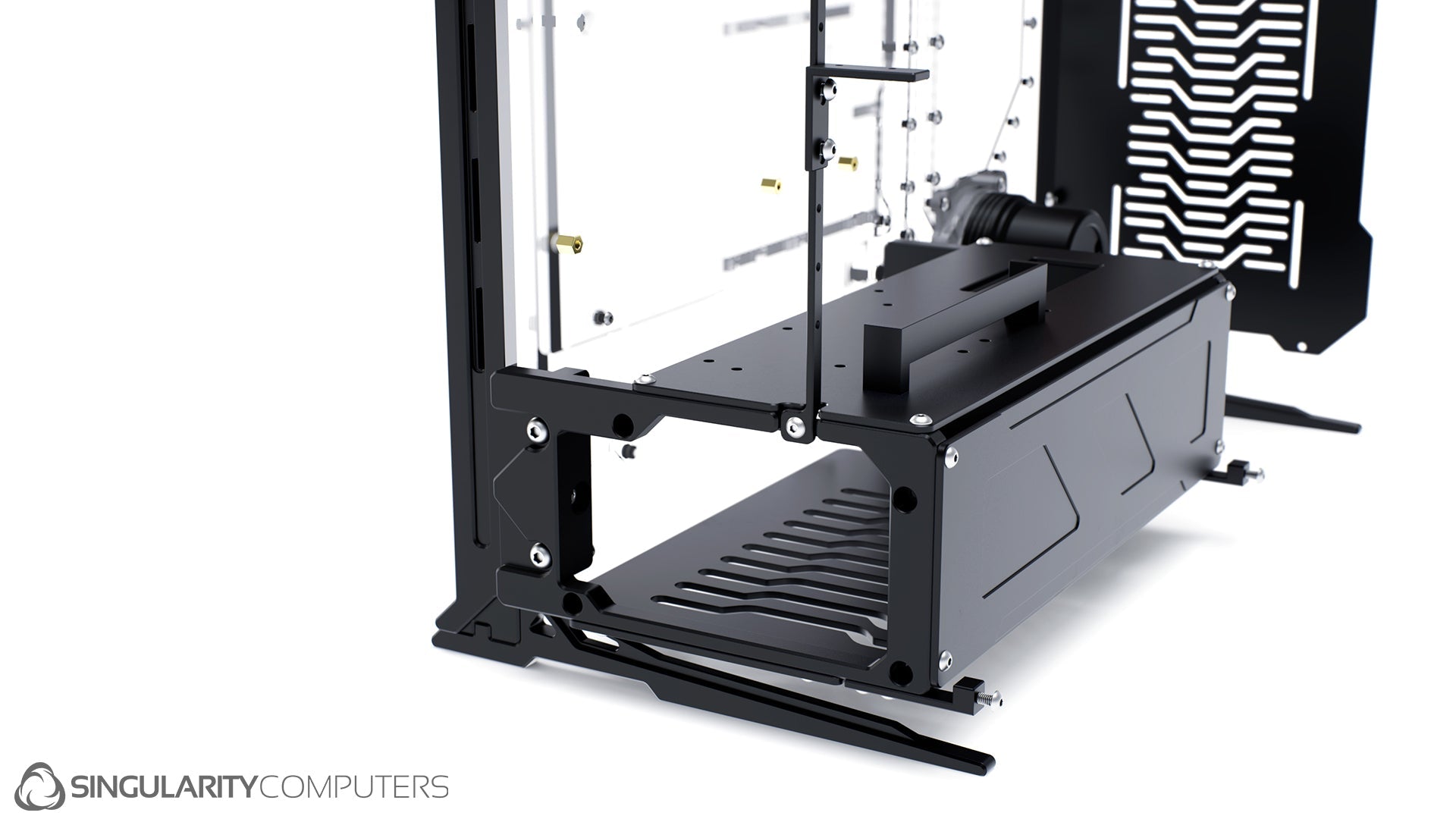 We are all experienced system builders at Singularity Computers. Our approach to product development begins with a need for our own builds and so the origin is always function. From there we start to build ideas around this function and the aesthetics and everything else follows. The original idea for Spectre came our years of building highly customized, high end water-cooled systems and trying to reduce the exceptionally long build times and complexity. Our approach to development is very hands on, we are doing real world testing every day.