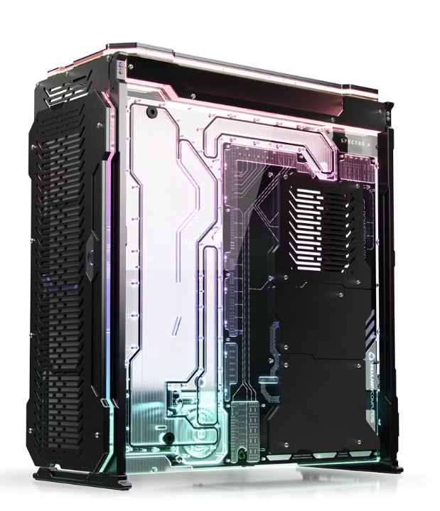 Spectre 4 is the ultimate extreme water-cooling case with more water-cooling features than any case on the market. It continues the famous Singularity Computers water-cooling integration via a distribution plate which makes up the rear wall of the case. It has the patented Singularity Computers PowerBoard which removes the need for cable management while integrating many features.