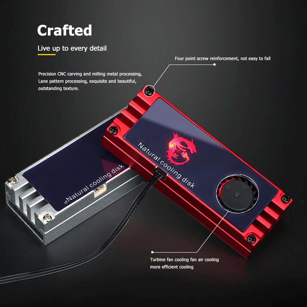 M2 SSD Heatsink with Digital Display and Cooling fan-Silver