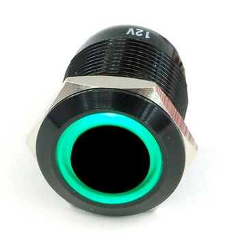Vandal Resistant Illuminated Latching Switch - Black - 22/19mm - Green Ring